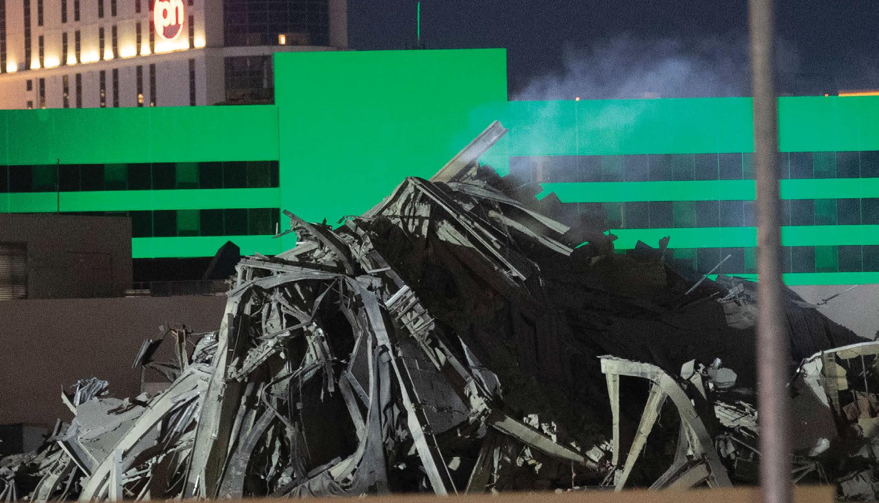 THE DROP OF THE TROP | OCTOBER 9, 2024 | BEFORE AND AFTER The Tropicana was an introverted Aries. A mysterious, liminal ghostgoth wallflower to its last days, the hotel was probably hiding a whole couple tons of historical secrets. If the rubble could talk ... never mind, it probably shouldn’t. The personality of this building knew better than to talk, just to look pretty until it’s all over. Good thing destruction is beautiful, even if only for a few seconds. —Corlene Byrd