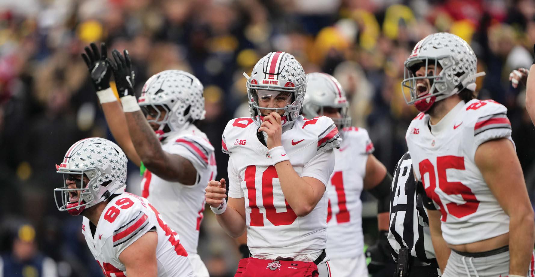 The Ohio State Buckeyes celebrate after a touchdown during the first half against Michigan on November 29. Ohio State won, 27-9. (AP Photo/Ryan Sun)