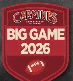 Watch every play on big-screen TVs and LED walls. Doors open at 1 pm & the festivities start at 3 pm with a feast of Carmine’s classics, seafood selections and a premium open bar.