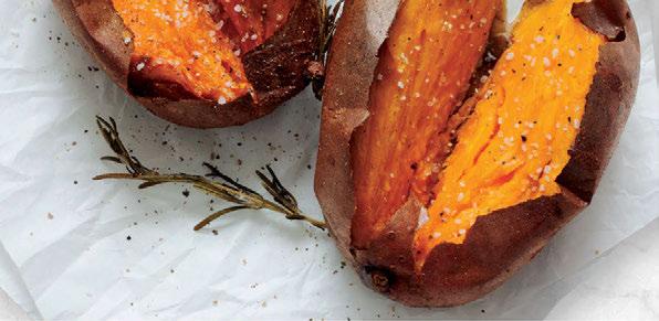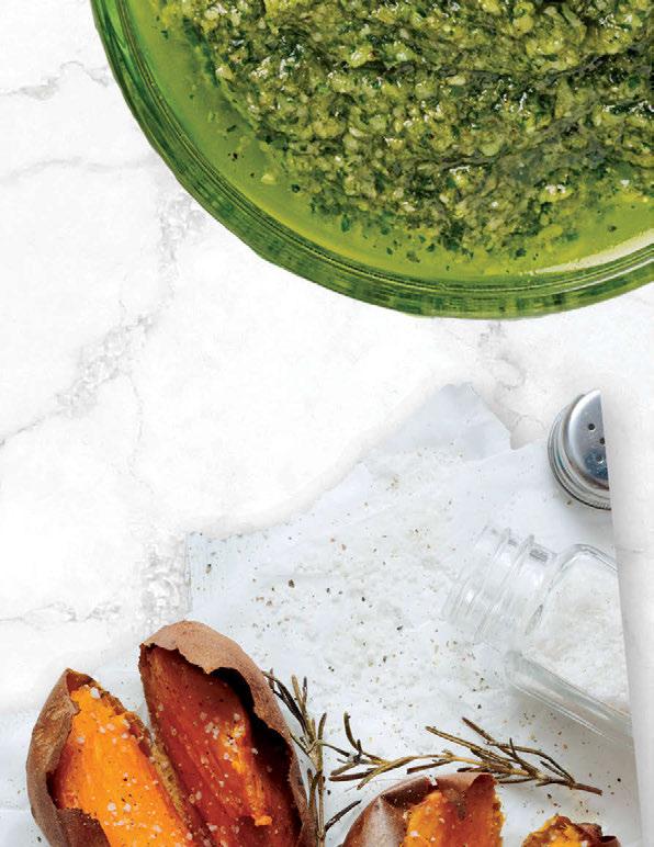 This dish pairs complex carbohydrates with a creamy, herb-packed sauce. Sweet potatoes o er fiber and antioxidants, while Greek yogurt delivers protein and probiotics that support digestion. Lew recommends making extra dressing to use throughout the week. It can be spooned over grilled chicken, mixed into pasta salad or used as a dip for vegetables.