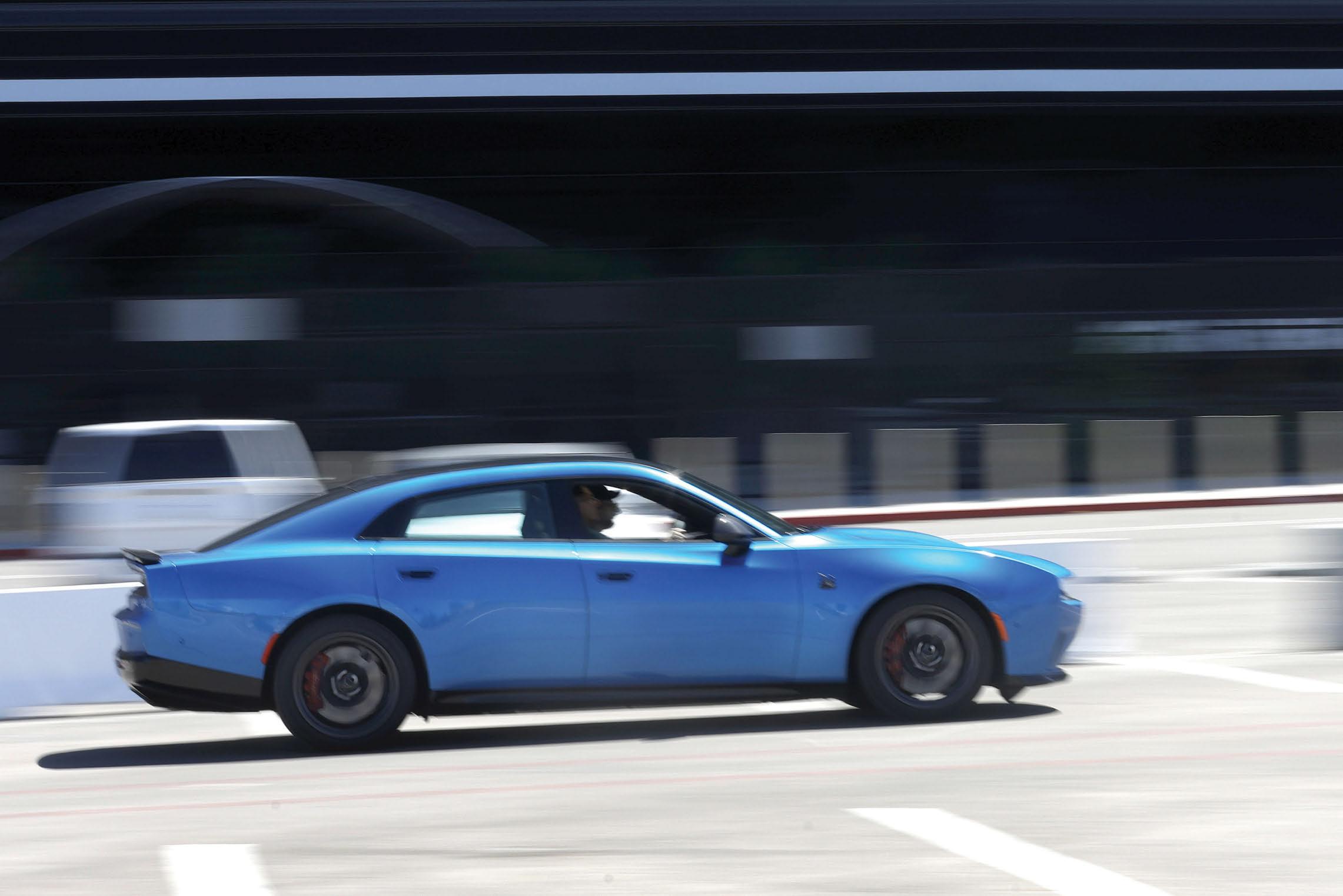 ALLEGIANT STADIUM | ELECTRIC VEGAS RECYCLE & RIDE | APRIL 4, 2026 Electric cars zoom through my neighborhood all the time. They go “eeeeee” and “nnnnnn” because they don’t have internal combustion engines. I applaud them for being environmentally sound, but they freak me out a little because I can’t always hear them coming, and I can’t quite shake the suspicion that they’re based on alien technology because I’ve heard Elon Musk talk. That’s why I like this 2026 Dodge Charger Daytona, a 670 horespower electric muscle car, seen here on a test drive during the Electric Vegas Recycle & Ride event at Allegiant Stadium. This literal Charger can go from 0-60 in 3.3 seconds ... and has a chambered exhaust system that makes the sound of a traditional gasoline-powered V8, so I can hear Sustainable Mad Max coming from a block away. Recycle & Ride, an event sponsored by local environmental groups and electric auto dealers, allowed people to test-drive electric vehicles while dropping off recyclable items. So fast, so Furiosa. –Geoff Carter