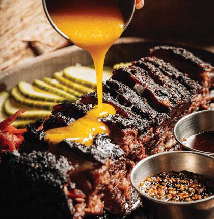 black shichimi pepper and sweet soy, this generous hunk of tender beef comes with three dipping sauces, pickles and lettuce cups.