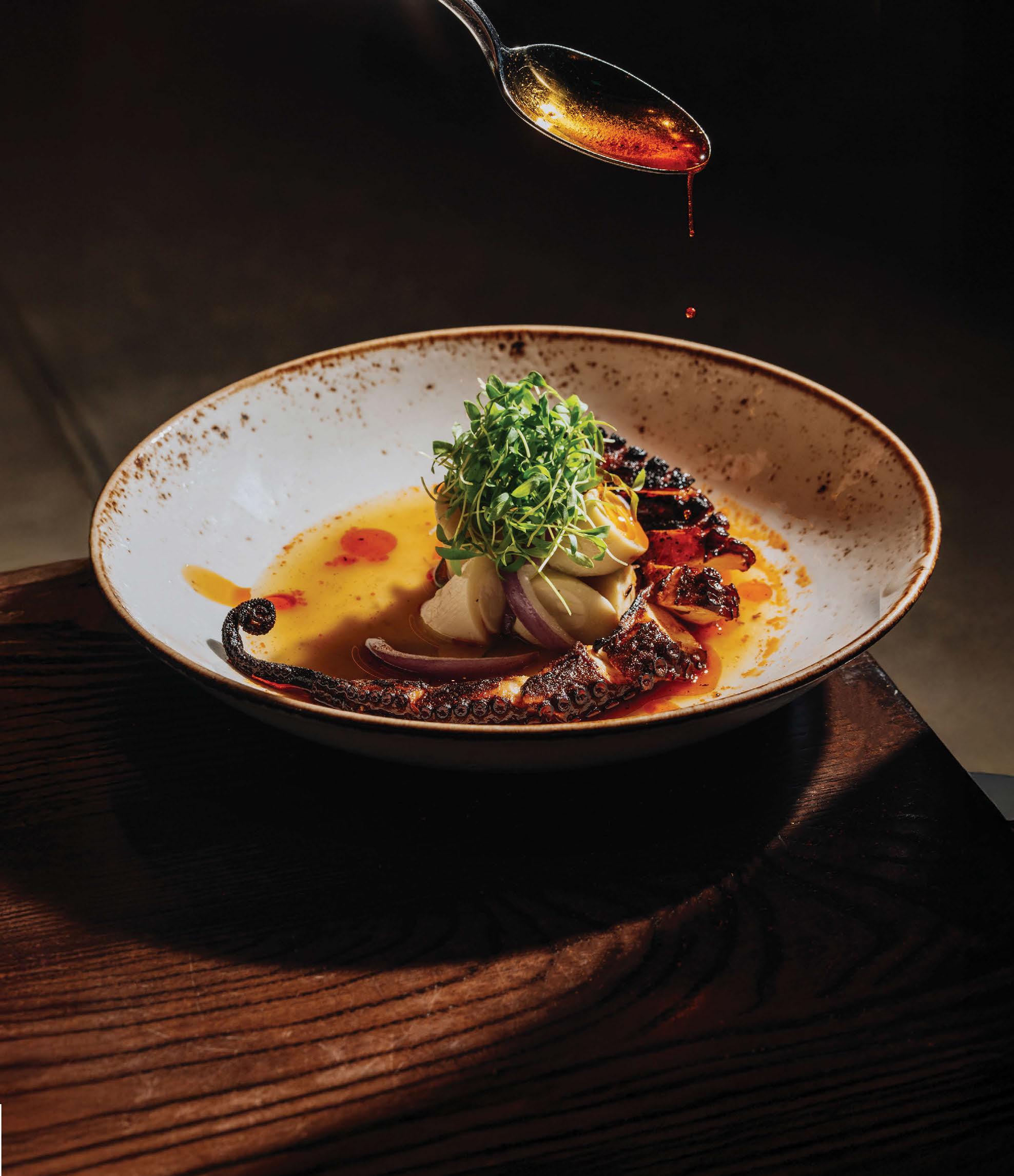 ($39) Charred, wood-fired flavors shine with a kick of paprika and tender hearts of palm.
