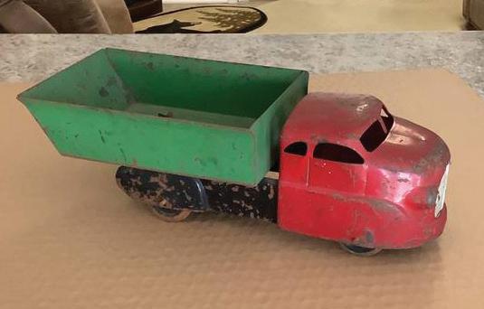 TOY DUMP TRUCK Pressed steel, possibly Wyandotte from the 1930’s, good condition, approx 14”L x4.5”H x5.5” W. Asking $85 cash only. Please call or text 423963-2365 between 8 am and 8 pm if interested.