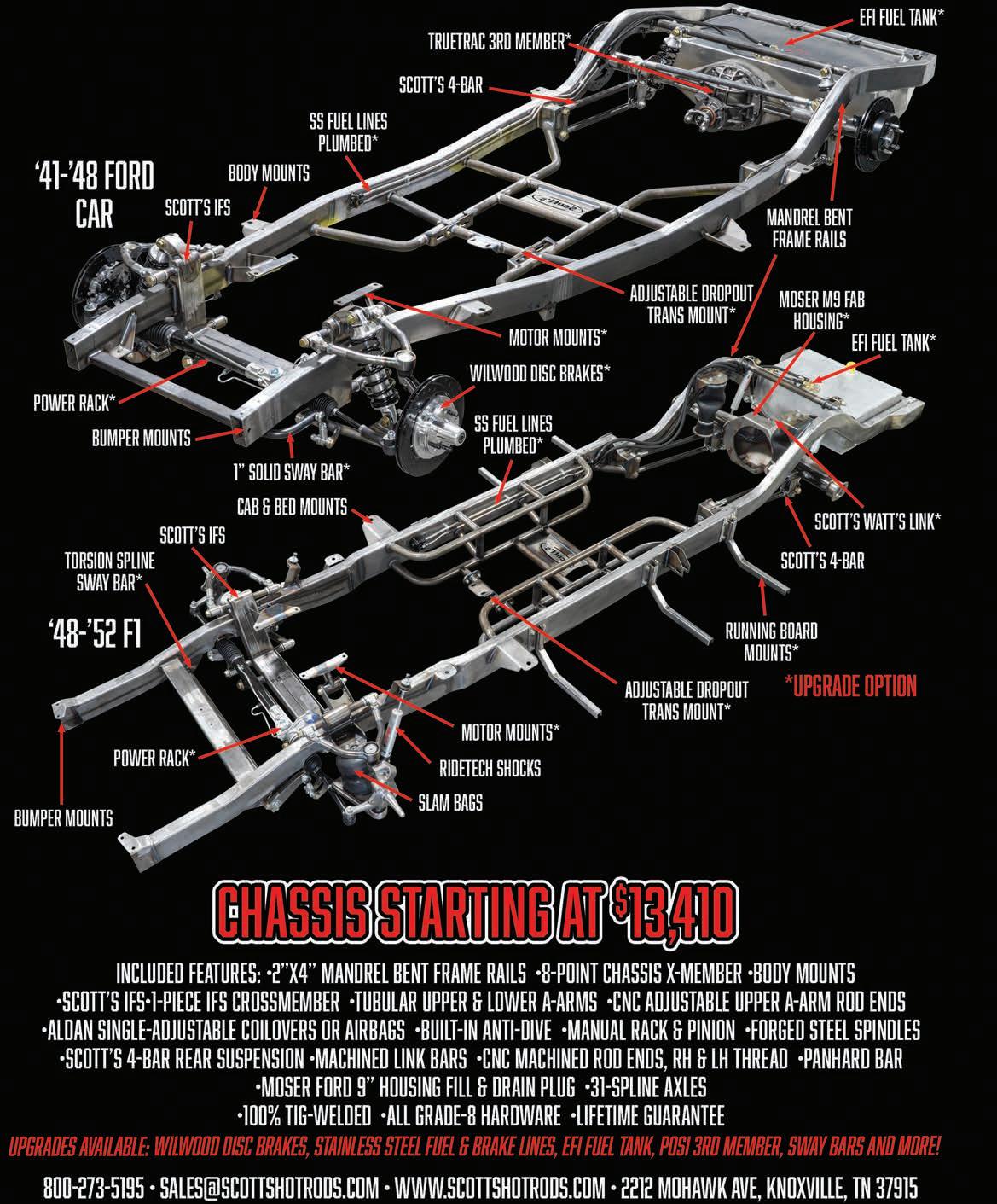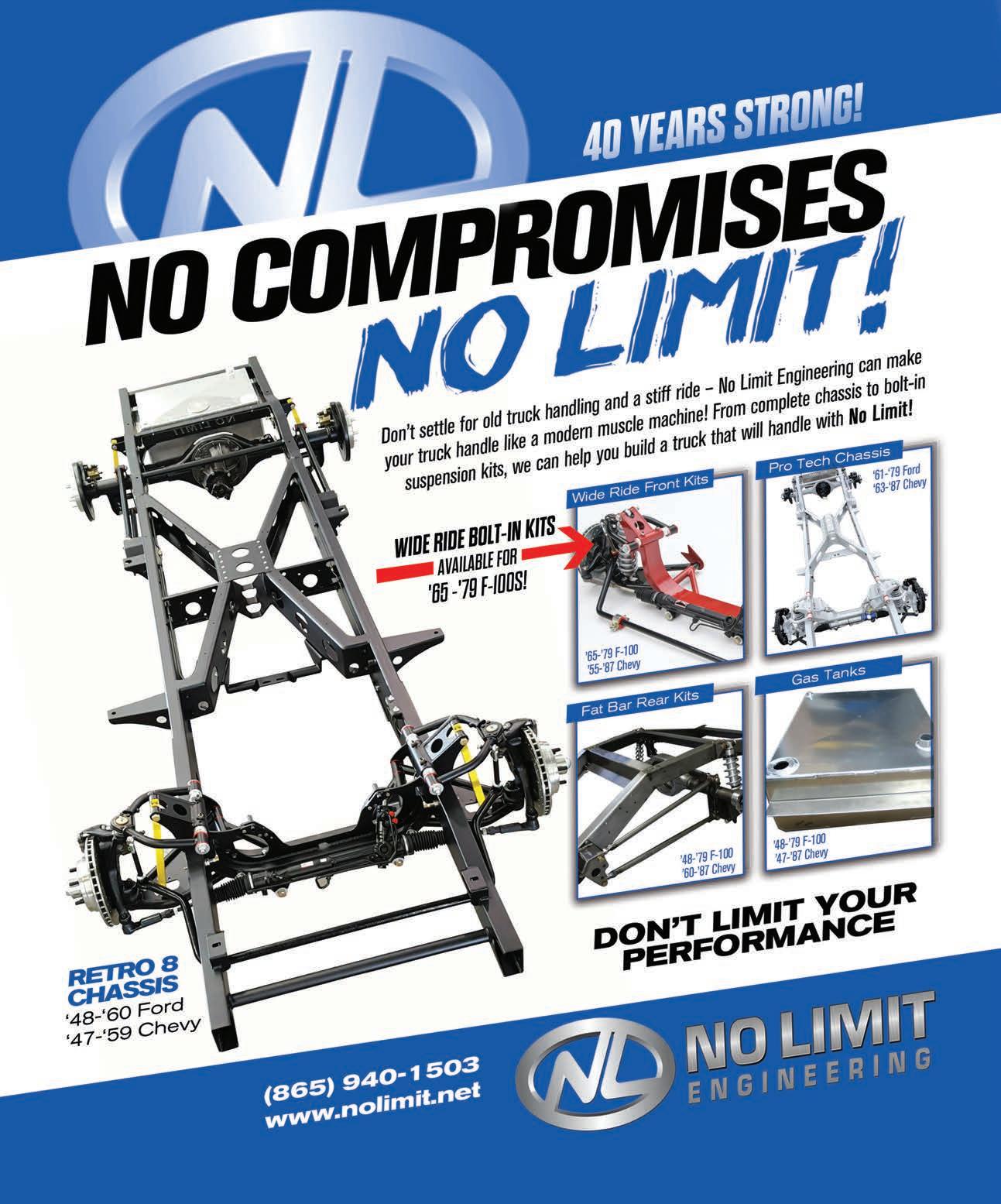 Here are the tire sizes the doctor ordered to give the DC ‘56 shop truck that most desirable rubber rake. On the front he mounted a pair of Cooper 225/60R17s and on the rear he chose beefier 245/65R17s to better fill out the wheel wells. We also think lower is better and to bring the beast a bit closer to the ground we installed a dropped axle and sandwiched some lowering blocks between the rear axle and springs. All in all, we think the operation was a success.