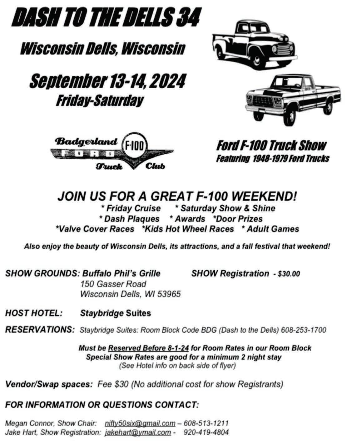 For more information, check out www.gnf100show.com. The show is open to all Ford pickups 1996 and older F-1, F-100 and F-150 models. (No Broncos or Rancheros).