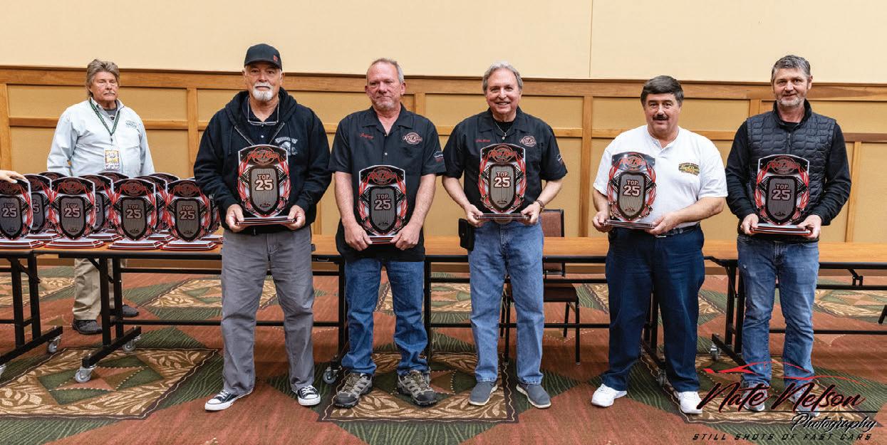 just won’t cut it in Detroit; Tammy and T&T Customs spent a solid three years massaging Gold Digger. At first, the car’s name might seem a crass play-on-words, however, Ray owns a gold mine, quite literally; she holds the keys to Crisson Gold Mine in northern Georgia. Ridler cars are littered with hand-built, one-off parts and more attention to detail than seems possible. No bolt untouched, no surfaced goes unpolished, chromed or painted. Ted Thomas of T&T Customs in Canton, Georgia took an Alloway chassis and hung a Winters independent quick-change rearend with Wilwood brakes and Aldan coilovers to round out the aftsection. Up front, Mrs. Ray rides on a Heidt’s IFS setup with matching Aldan coilovers and Wilwood binders. The wheels on Gold Digger are like none other. Designed by