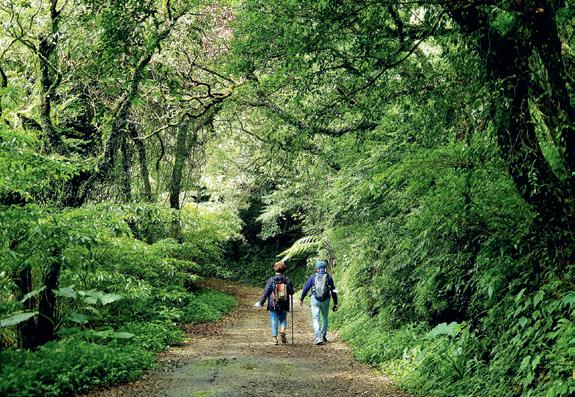 Der spektakulärste Abschnitt des Grand Stride erstreckt sich im Nationalpark Yangmingshan, nur 30 Minuten mit dem Bus von der Station Jiantan entfernt. Von der Abzweigung Erziping schlängelt sich der Weg zwischen Schwarzkiefern, Farnen, Moosen und Flechten hindurch, deren Duft sich mit dem Schwefelgeruch der Umgebung vermischt. Ab März säumen Rhododendren das Unterholz, im Juni übernehmen Begonien und blühen bis zu den ersten kühlen Herbsttagen. Ab einer Höhe von 800 Metern ist die Luft angenehm kühl und bildet einen Kontrast zur Hitze der Ebene. Ein Weg führt zum Gipfel des Datun, dem einzigen aktiven Vulkan Taiwans, dessen letzter großer Ausbruch mehr als fünftausend Jahre zurückliegt. Nur wenige Serpentinen bergab bietet Xiaoyoukeng ein Lichtspiel, das von Fumarolen durchbrochen wird und den Hängen eine fast unwirkliche milchige Farbe verleiht.