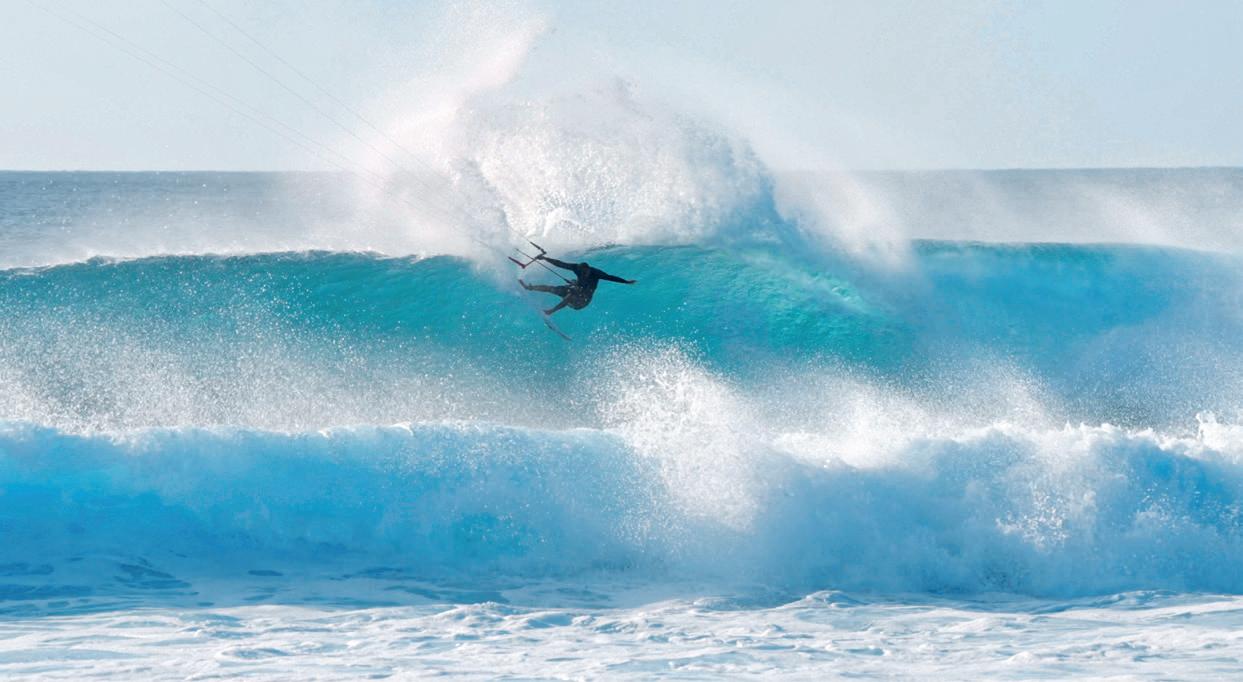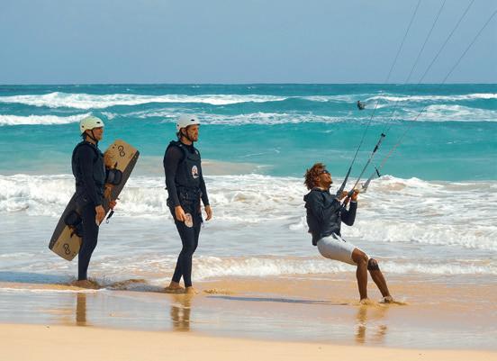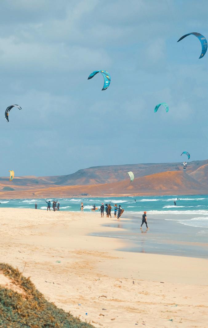 Und ich wurde fündig: Kap Verde, 25 Grad, Direktflüge, weniger als sechs Stunden Flugzeit. Zwischen den grünen Bergen von Santo Antão und den einsamen Stränden von Sal bietet die Inselgruppe eine beeindruckende Vielfalt an Landschaften. Da ich nur eine Woche Zeit hatte, entschied ich mich für Sal, die Insel mit dem vielsagenden Namen (portugiesisch für „Salz“). Hier trifft die raue See auf trockene Ebenen und Salinen und schafft eine ebenso schroffe wie ungewöhnliche Landschaft. Ein Ort, an dem man tief durchatmen möchte, um ein wenig von seiner Magie in sich aufzunehmen. Sal ist ein Mekka für Wassersportler und vor allem für Kitesurfer: konstante und gleichmäßige Winde, besonders zwischen November und Mai, legendäre und abwechslungsreiche Spots, sonniges Klima und warmes Wasser. Ein Reiseziel, wo Sport und Entspannung aufeinandertreffen. Diese Insel ist auch die Heimat dreier Kite-Weltmeister: Airton Cozzolino, Matchu Lopes und Mitu Monteiro, denen Sie vielleicht im Wasser oder vor Mitus Kiteschule am Kite Beach begegnen werden.