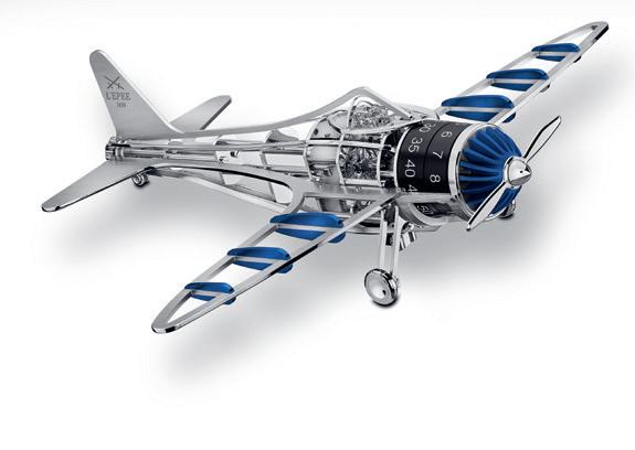 L’Epée 1839 nimmt uns mit auf eine Reise durch die Lüfte. Mit dieser 8-Tage-Uhr in Form eines Flugzeugs aus den 1930er Jahren, die in Zusammenarbeit mit der ECAL entstanden ist, würdigt das Unternehmen die Eroberung des Himmels als eine der brillantesten Errungenschaften aller Zeiten. Die Stunden und Minuten werden über aufgedruckte Ziffern auf großen Stahlscheiben angezeigt. Die Energie für das Uhrwerk wird durch die vollständig skelettierte Krone direkt hinter dem Propeller erzeugt, die die Kühlrippen des Flugzeugmotors imitiert. lepee1839.ch