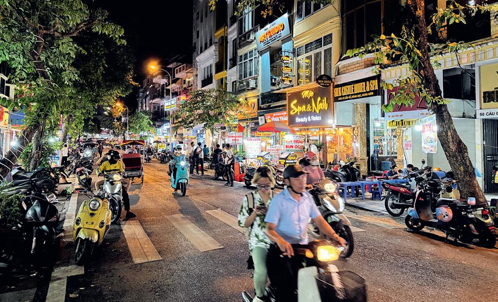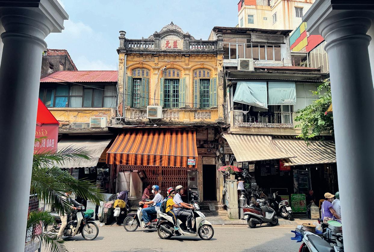 ins Herz von Hanoi vordringen, desto weiter reisen wir in die Vergangenheit. Kaum vorstellbar, dass in diesem altertümlichen Handelsviertel die Quadratmeterpreise mittlerweile so hoch sind wie in London oder Tokio. Kunsthandwerksläden boomen hier, ebenso wie kleine Garküchen, in denen man die traditionelle nahrhaftige Suppe mit Gemüse, Reisnudeln, Gewürzen und Schweinefleisch probieren kann.