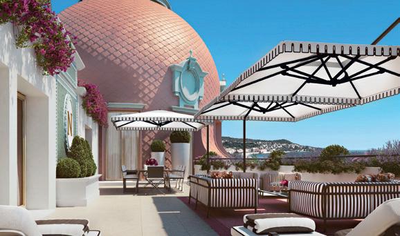 Im siebenten Himmel mit Le Negresco Dazu genügt es, im sechsten Stock des Negresco in Nizza Halt zu machen, um die neue, außergewöhnliche Suite Jeanne & Paul zu entdecken, die sich über die gesamte Etage erstreckt. Mit einer Fläche von 400 m2 bietet diese majestätische Suite einen 180°-Panoramablick auf die Baie des Anges, ergänzt durch 200 m2 Terrassen auf drei Ebenen. Als wahrer Ort der Ruhe über dem glitzernden Wasser des Mittelmeers wird hier, schwebend zwischen Himmel und Meer, der Luxus der Zeit zelebriert.