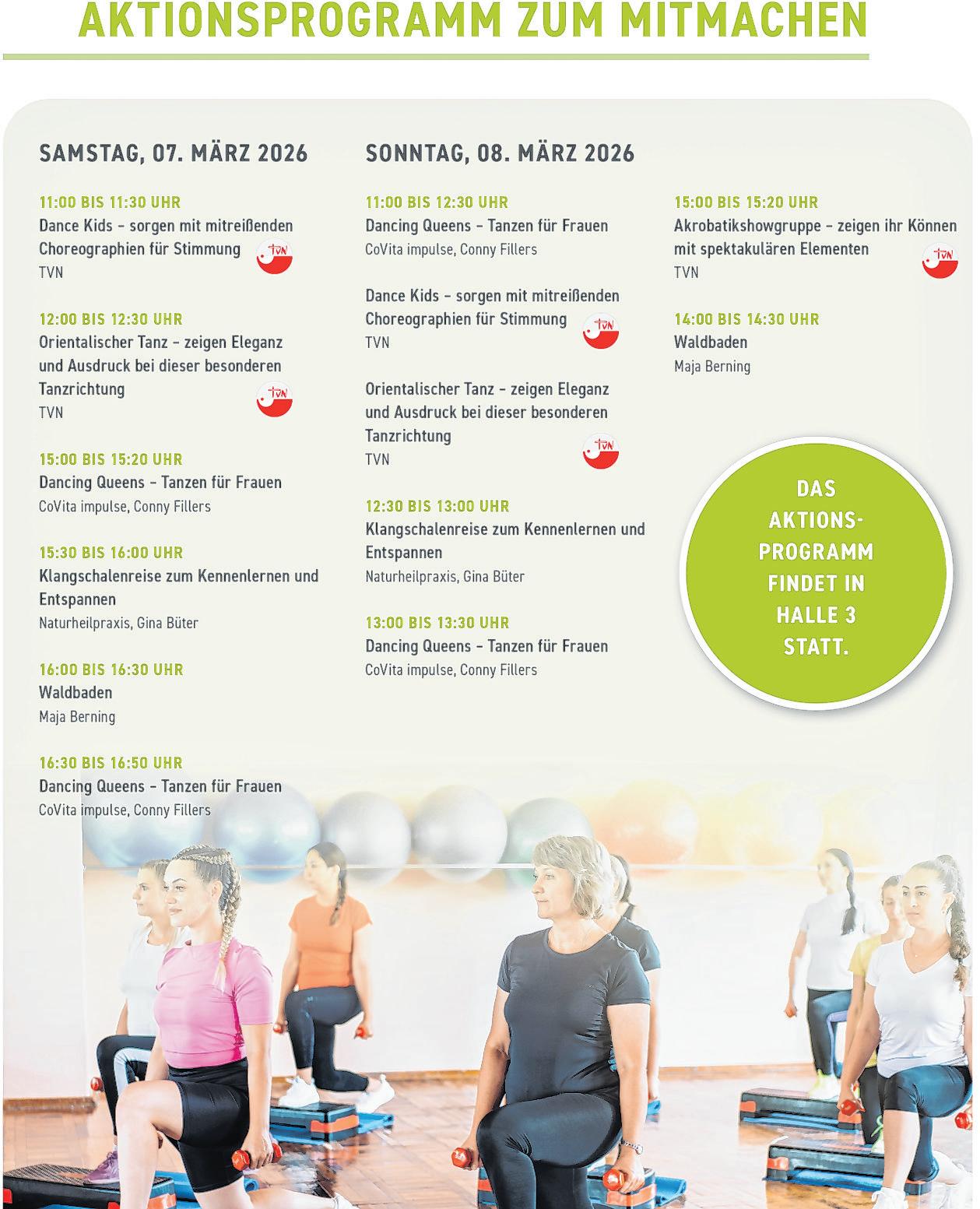 c h i e d en e n A b t e i l u n g e n d e s T V N o r d h o r n – l ä d t B e s u c h e r i nn e n u n d B e s u c h e r d a z u e i n s e l b s t a k t i v z u w e r d e n u n d n e u e I m p u l s e f ü r e i n e n g es u n d e n A l l t a g m i t z u n e h m e n E r g ä n z t w i r d d i e s d u r c h e i n u m f a n g r e i c h e s F a c h v o r t r a g sp r o g r a m m m i t i n s g e s a m t 1 5 V o r t r ä g e n z u v i e l f ä l t i g e n T h em e n r u n d u m P r ä v e n t i o n , W o h l b e f i n d e n u n d G e s u n dh e i t s f ö r d e r u n g A u c h d i e k l e i n e n G ä s t e k o m m e n n i c h t z u k u r z : E i n l i e b e v o l l g e s t a l t e t e s K i n d e rl a n d , e i n B a l l o n k ü n s t l e r s ow i e z a h l r e i c h e f a m i l i e nf r e u n d l i c h e A n g e b o t e m ac h e n d i e B A L A N C E b e w u s s t z u e i n e r M e s s e f ü r d i e g a n z e F a m i l i e M a g i s c h e s E n t e rt a i n m e n t b i e t e t d a s g a n z e W o c h e n e n d e B r a n d a n S m e e t s , g e m e i n s a m e L a c h e r g a r a n t i e r t B e s o n d e r s f r e u e n s i c h d i e V e r a n s t a l t e r d a r ü b e r , m i t d e r A O K N i e d e r s a c h s e n e r n e u t e i n e n s t a r k e n K o o p e r a t i o n sp a r t n e r a n d e r S e i t e z u w i ss e n , d e r d e n e r f o l g r e i c h e n N e u s t a r t i m v e r g a n g e n e n J a h r m a ß g e b l i c h b e g l e i t e t h a t u n d s i c h k l a r z u r g a n zh e i t l i c h e n G e s u n d h e i t s f ö r d er u n g b e k e n n t I n d i e s e m J a h r ü b e