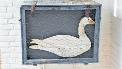 "Gänsestall" (Holz, massiv) mit Gans (Metall und handbemalt), mit Maschendraht "gesichert", dekorativ, originell, zum Hängen oder Stellen, L:73 cm, B:40 cm, H: 56 cm, für 80,00 € zu verkaufen. ( 05903 7610 Online-ID %3689