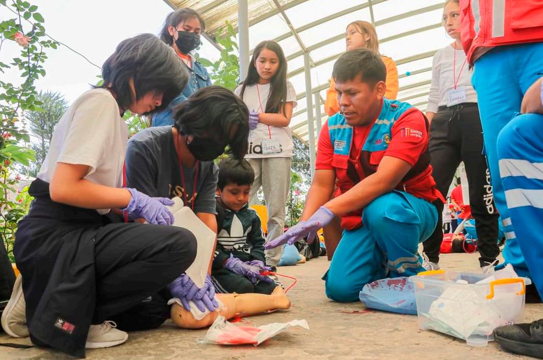 La responsable del SAMU Ayacucho, Paola Hinostroza Chauca, señaló que, con una enseñanza didáctica y divertida, los menores trabajaron técnicas de reanimación cardiopulmonar, curación de heridas, control de hemorragias y reconocimiento de los signos vitales.
