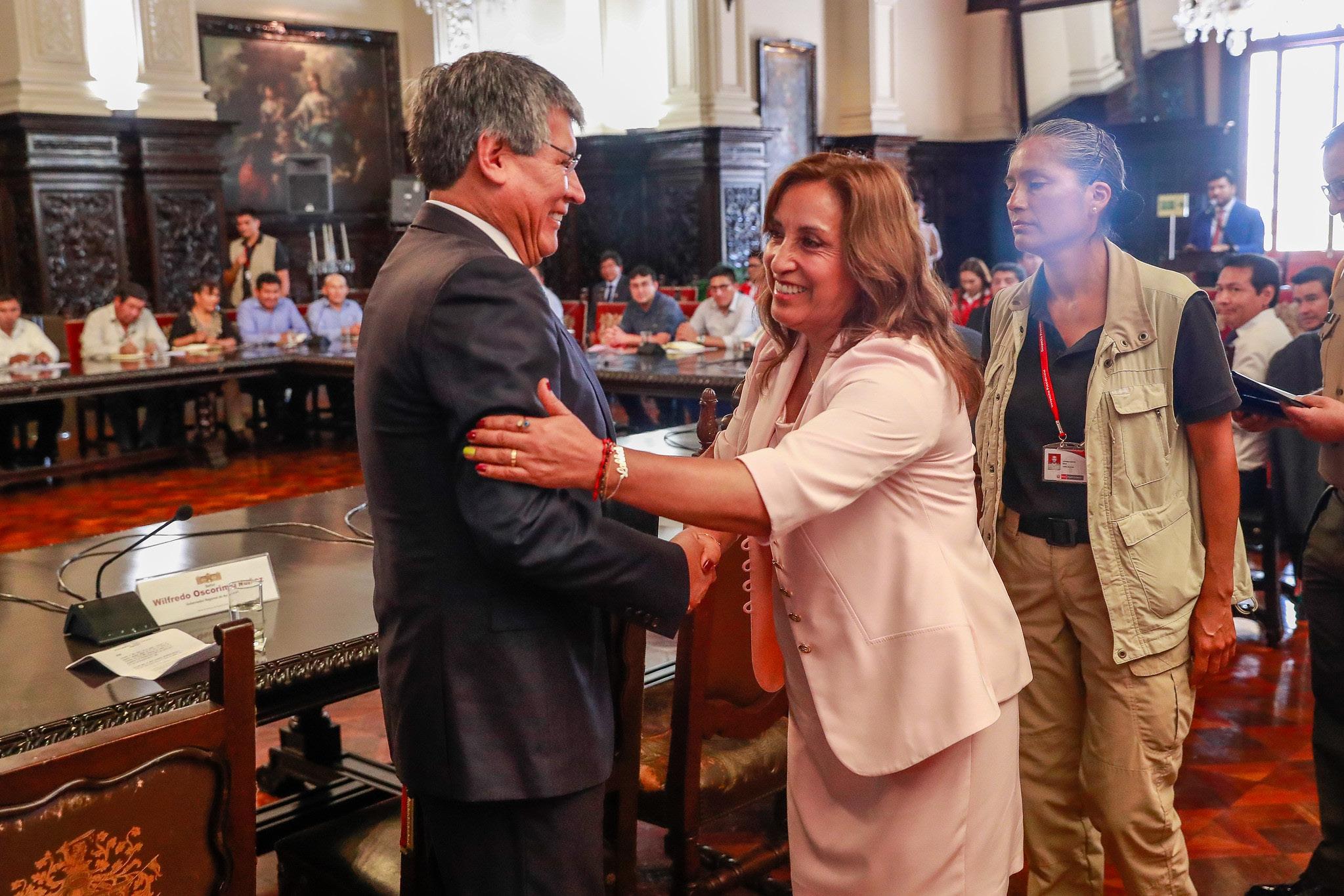 Elgobernador regional de Ayacucho, Wilfredo Oscorima Núñez, acompañado de un promedio de 40 alcaldes, se reunió con la presidenta de la República Dina Boluarte Zegarra, con la finalidad de gestionar 10 proyectos de inversión