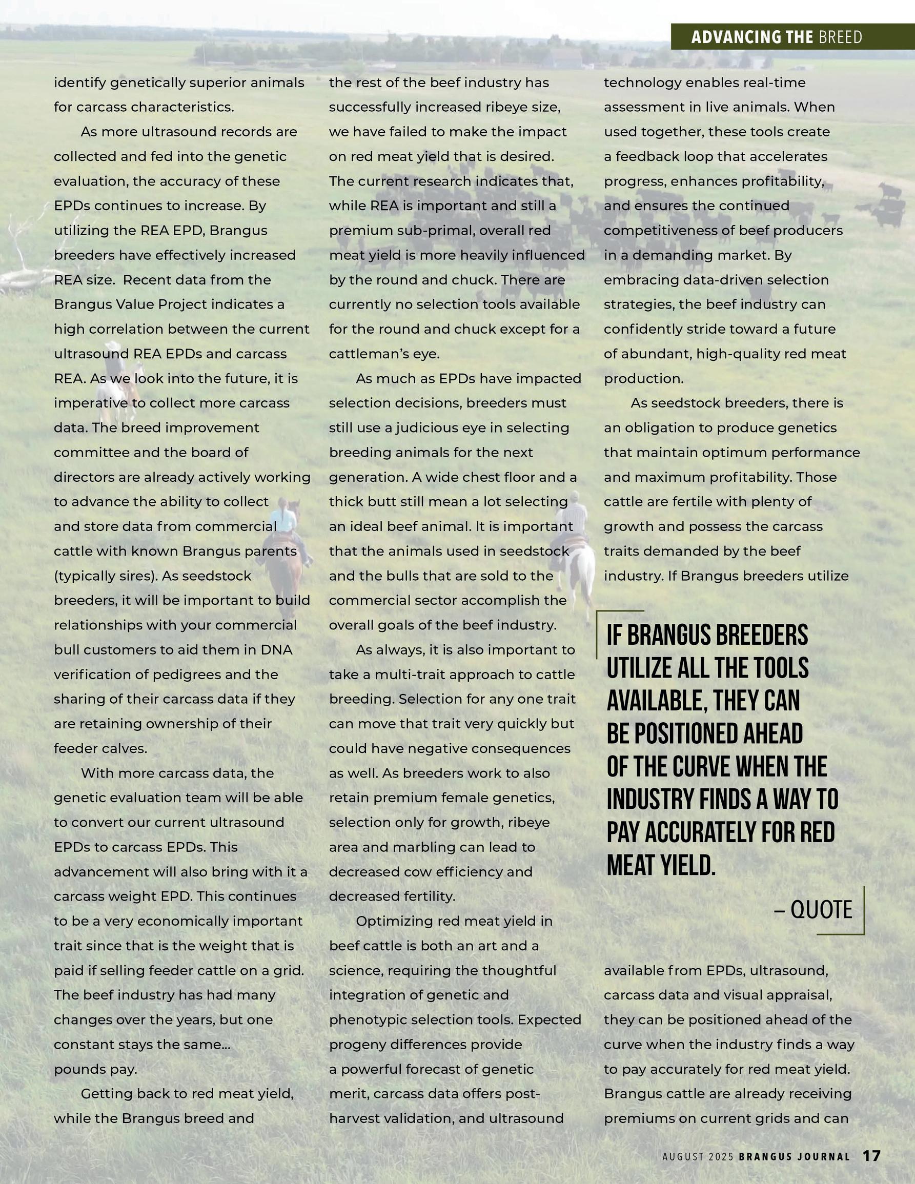 With Frontline’s 15,000 subscribers, this kind of exposure places your operation directly in front of proven, engaged cattlemen with active interest and investments in Brangus genetics.