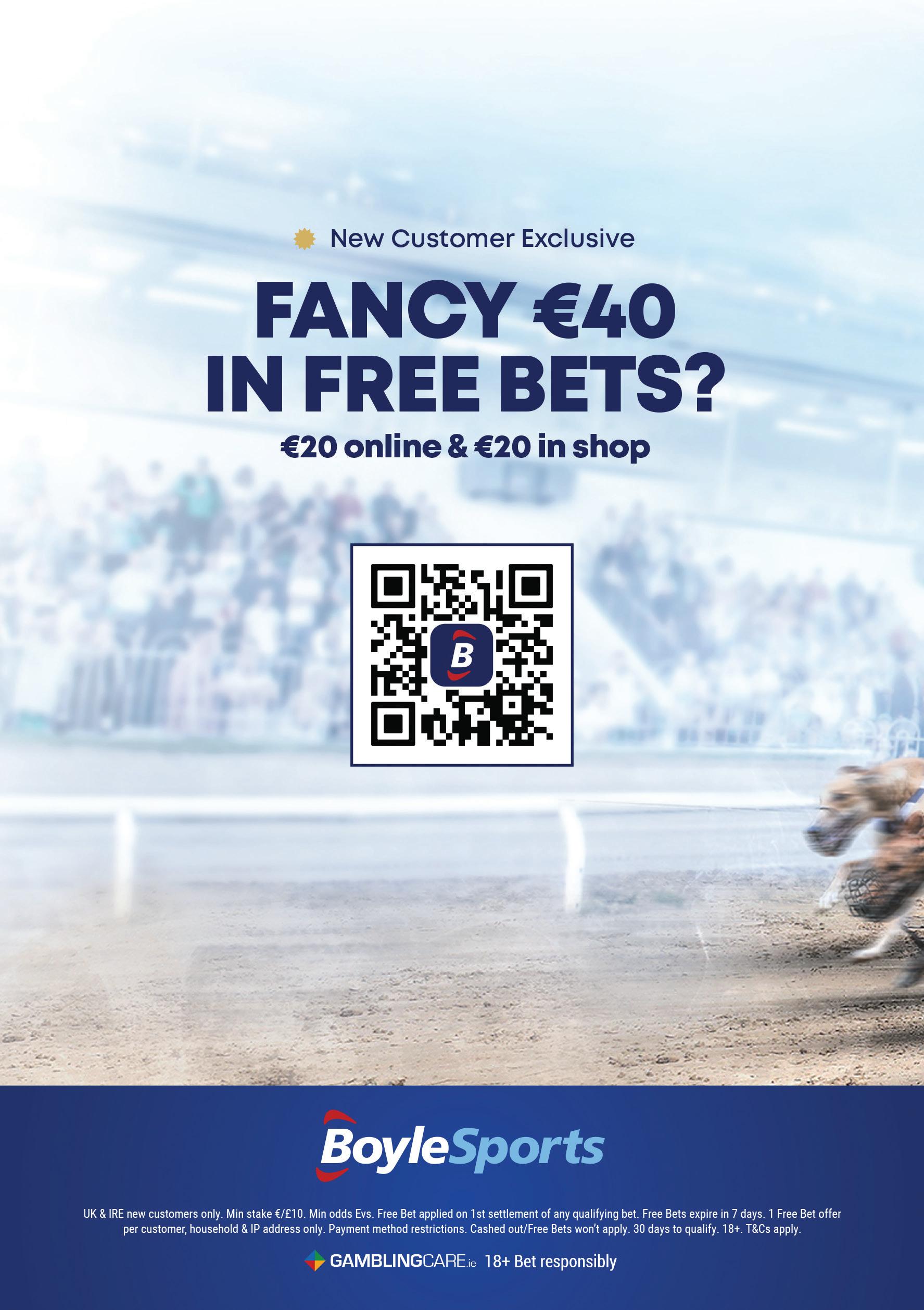 GAMBLINGCARE.ie 18+. IRE/NI online customers & in-shop only. Max refund £/€20. Win or win part of e/w outright singles only. 5 or more runners. 1st bet on each race. Free bet expires after 7 days. Free/void/antepost bets don’t qualify. In the event of a dead heat the offer will not apply. Applies to First Past the Post result only. Unnamed MONEY BACK AS A FREE BET IF 2ND All Races