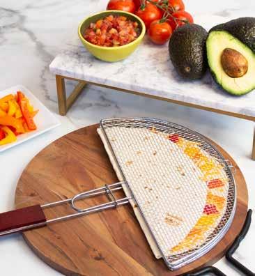 Cestas de parrilla. The hardest part about making a quesadilla is if the ingredients fall out! This grill basket latches closed to allow for easy grilling! Plus, use to grill loose veggies like peppers! Hand wash recommended. Approx.