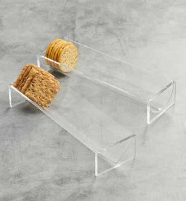 Soporte para galletas - Juego de 2. This acrylic cracker holder set is perfect for serving crackers or cookies. Set includes one square and one round tray. Hand wash recommended. Approx. 1-1/2" H x 8-1/2" W x 2-3/4" D.