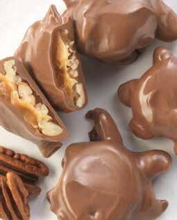 Nueces Pacanas cubiertas con caramelo y chocolate. Crisp pecans and creamy caramel smothered in delicious milk chocolate. 7.5 oz. box. Contains: - Pecan*