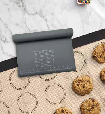 Raspador y cortador de masa. This versatile tool helps clear work surfaces, simplifies lifting and turning pastry, and efficiently sections dough. Stainless steel with silicone coating makes for a sturdy tool with easy clean up. Includes useful measurements. Dishwasher safe. Approx. 4” H x 5-1/4” W.