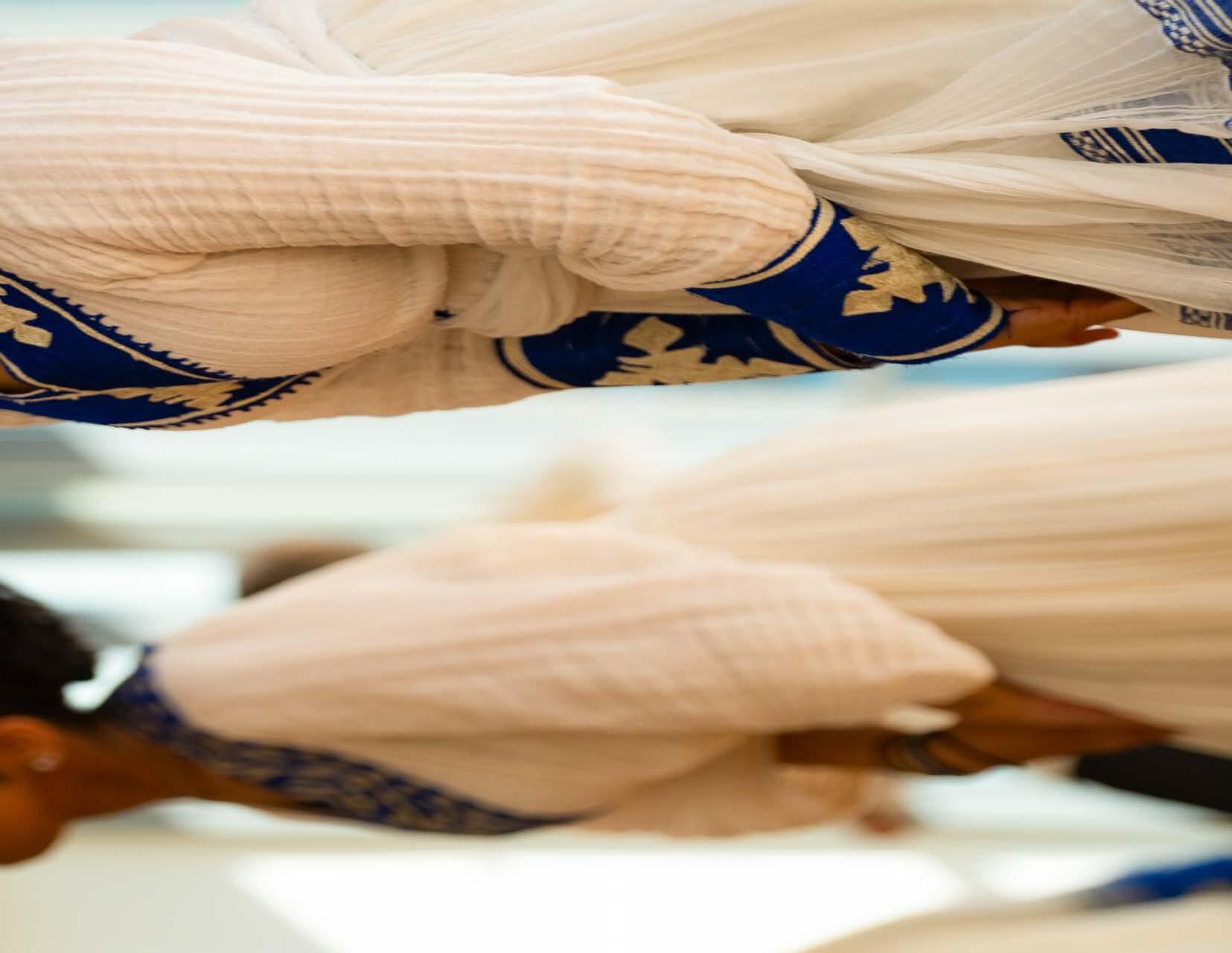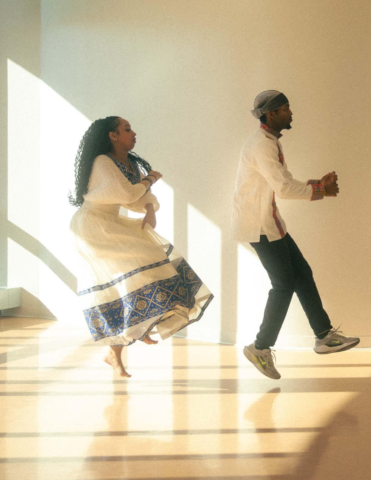 From deliberate shoulder and chest shakes to graceful hip movements, to intricate footwork, Ethiopian dance moves through the whole body.