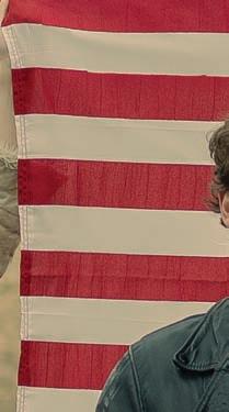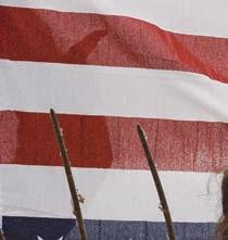 A man with a scruffywhite beard held an American flagwhile another, younger man yelled at him. The two debated whether the police were protecting or part of the problem. Xo painted the exchange, hoping to capture the need for public grief, disagreement, and conversation.