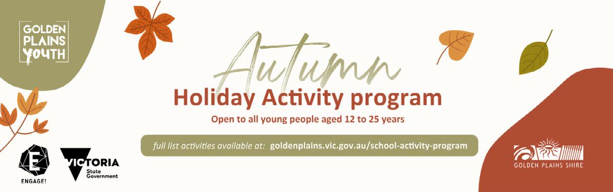 To see a full schedule of available activities and to find out when you can register, visit goldenplains.vic. gov.au/school-activity-program