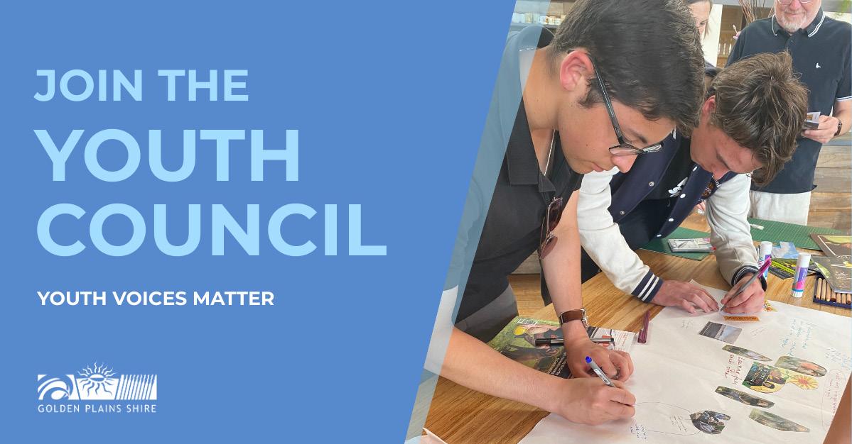 Expressions of Interest (EOI) to join the Youth Council are invited now and can be completed by contacting Council’s Youth Development Team at goldenplainsyouth@gplains.vic.gov.au or calling 5220 7111.
