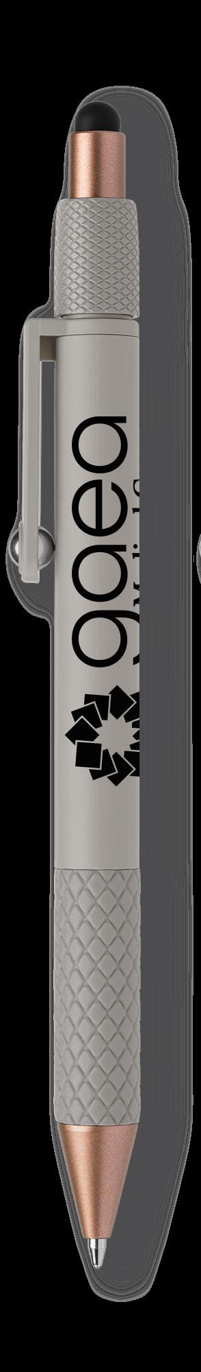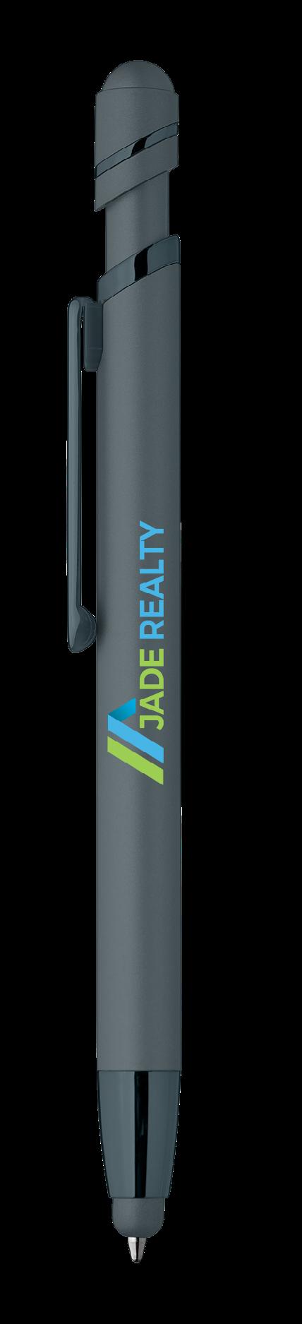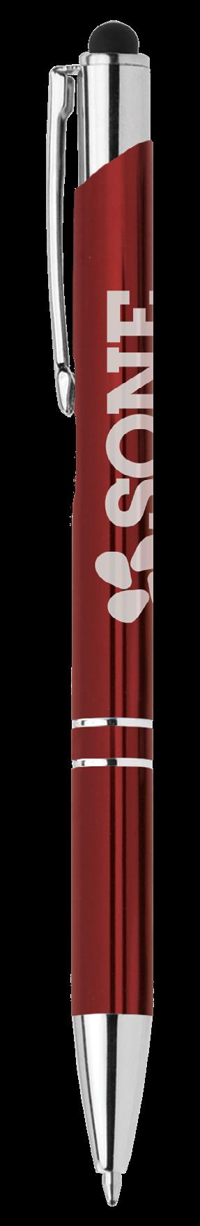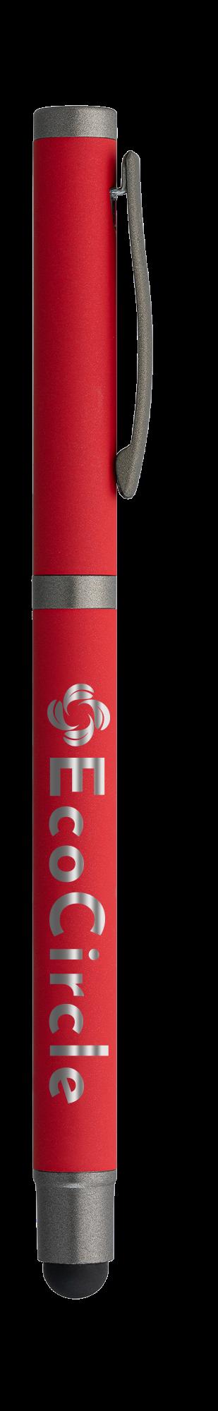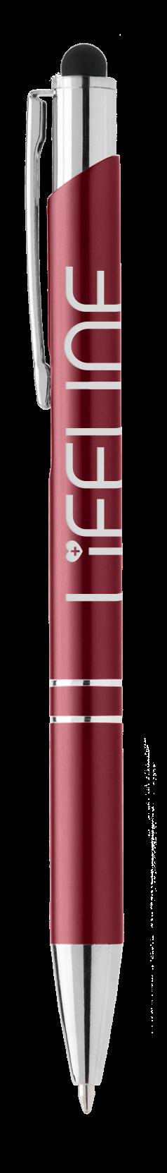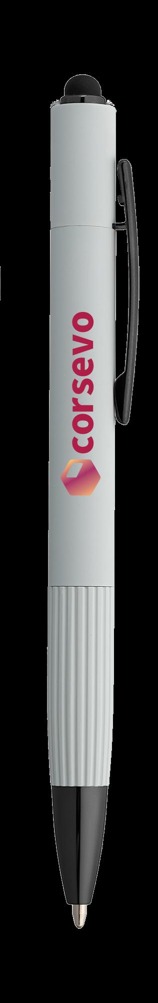 SAGA KUGELSCHREIBER MIT DRUCKMECHANISMUS UND STYLUS AUS RECYCELTEM ALUMINIUM » JBO
