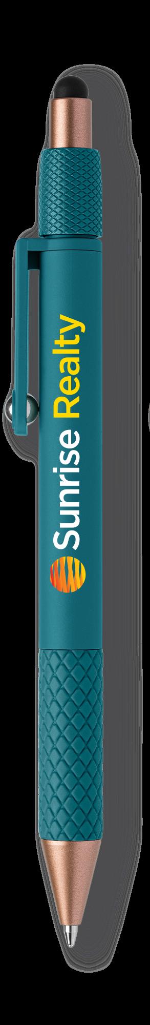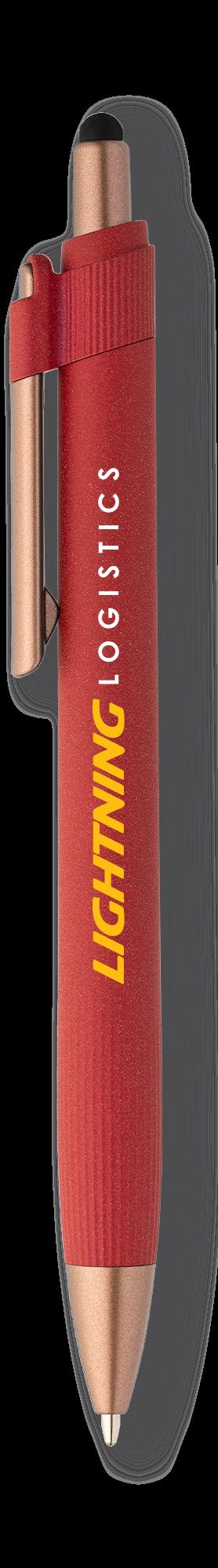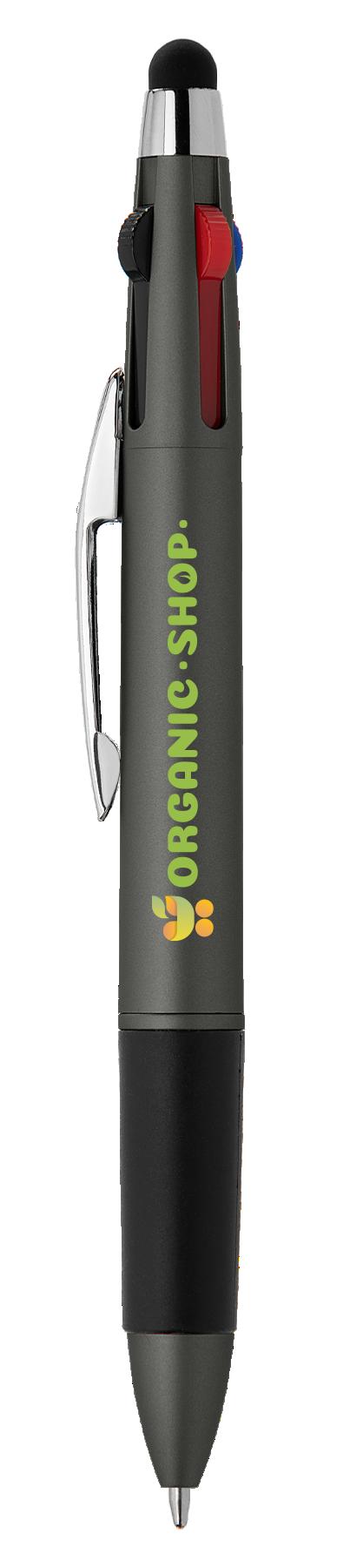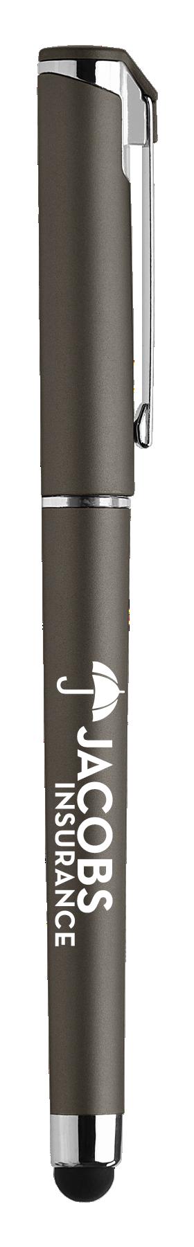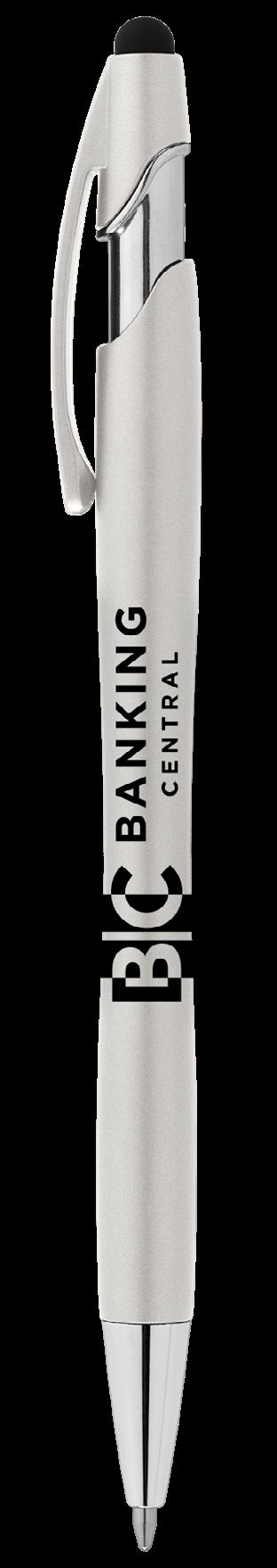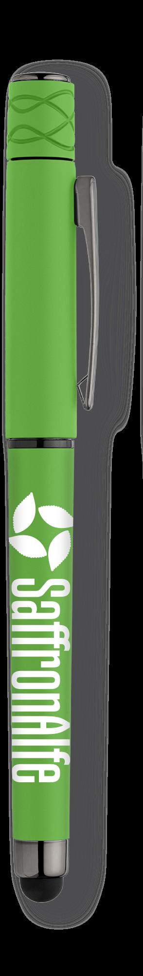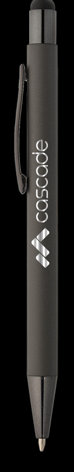 SAGA KUGELSCHREIBER MIT DRUCKMECHANISMUS UND STYLUS AUS RECYCELTEM ALUMINIUM » JBO