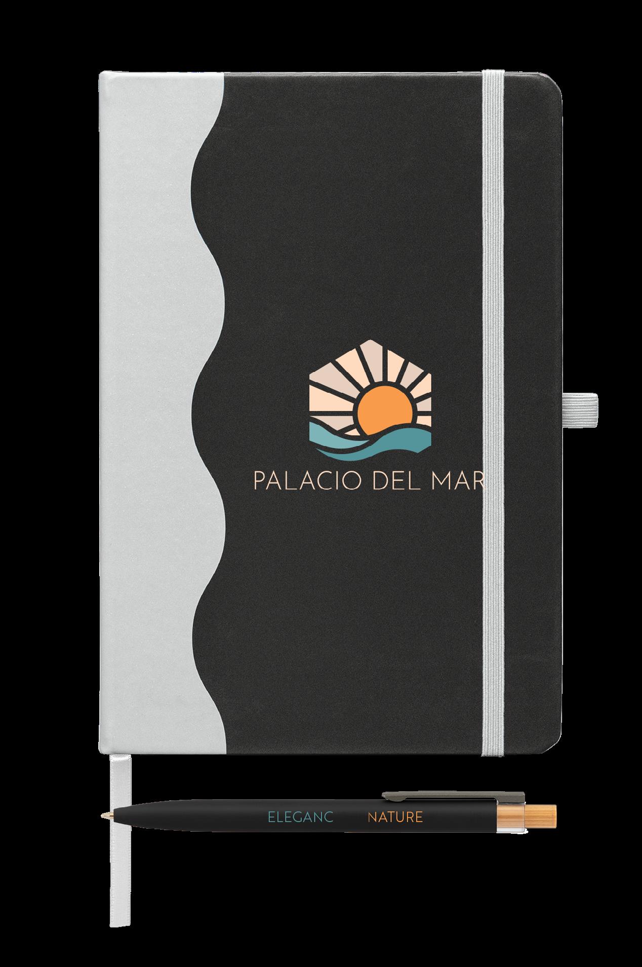 GRETE NOTIZBUCH- UND KUGELSCHREIBER-SET MIT WELLENMUSTER