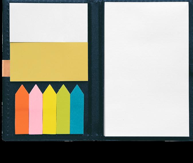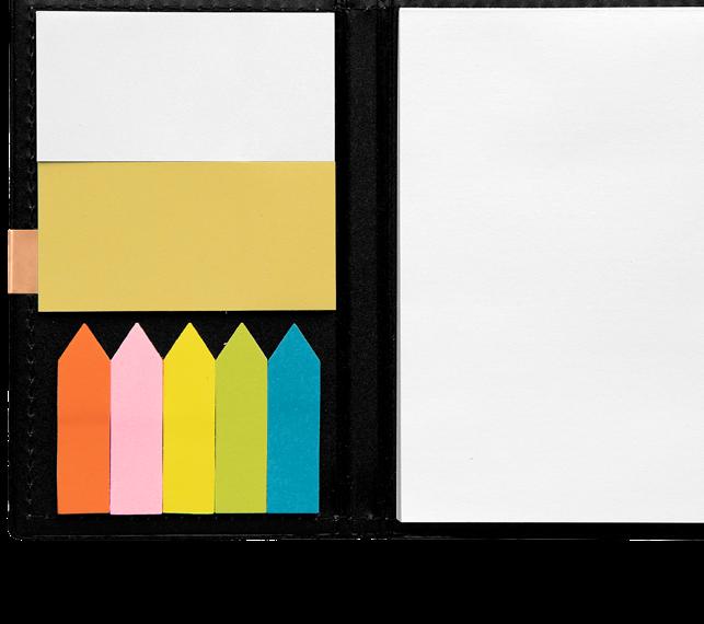 KRAFTVOLLE FARBEN AN SEITENRÄNDERN UND NOTIZBUCHRÜCKEN