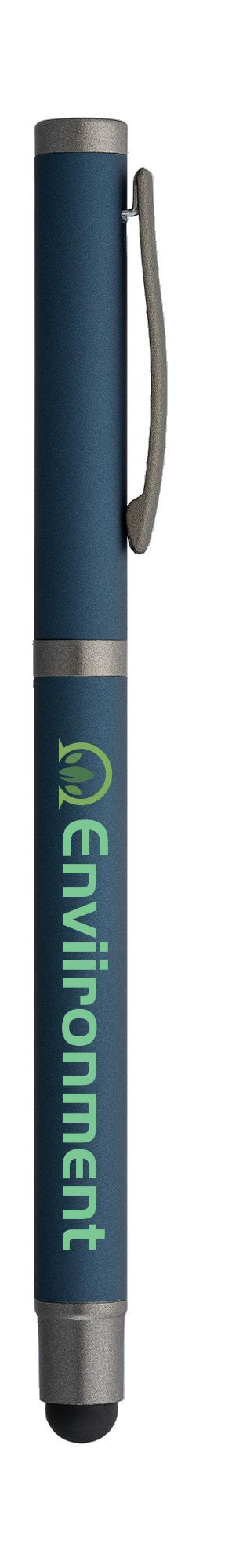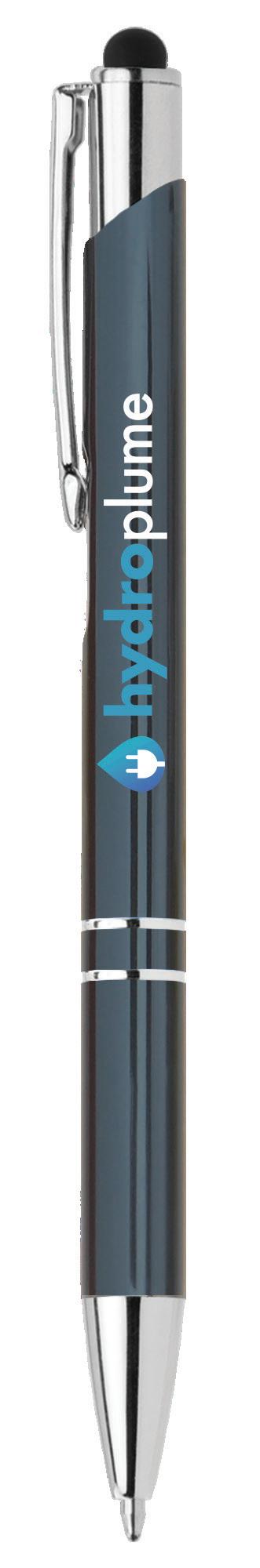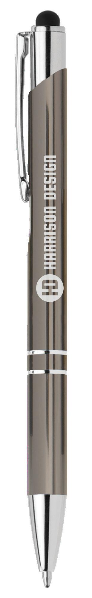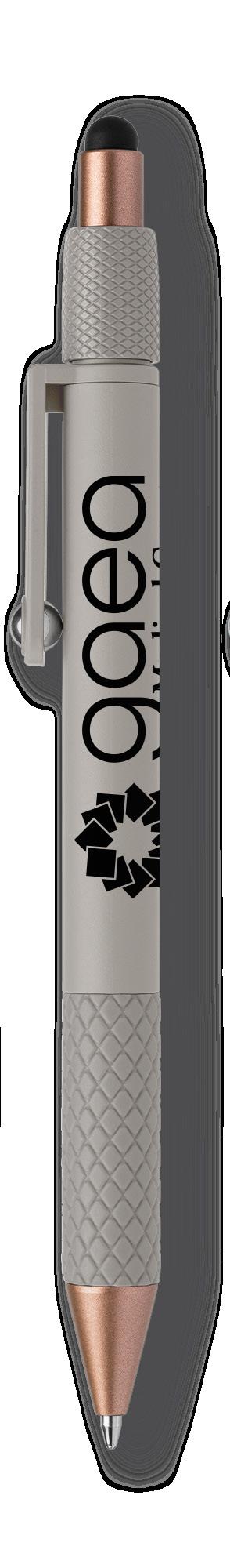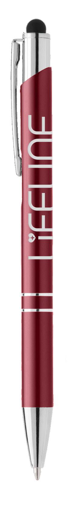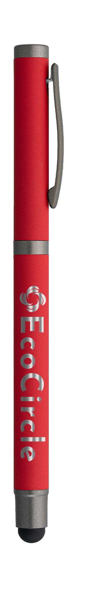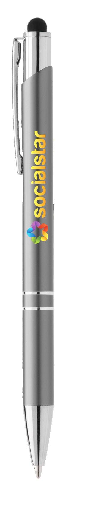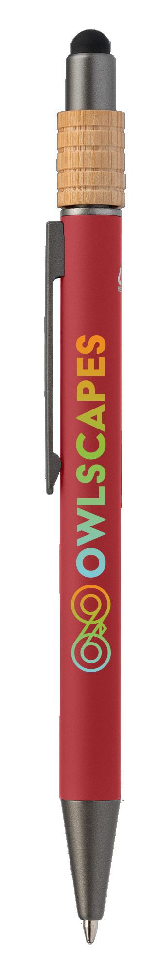 SAGA KUGELSCHREIBER MIT DRUCKMECHANISMUS UND STYLUS AUS RECYCELTEM ALUMINIUM » JBO