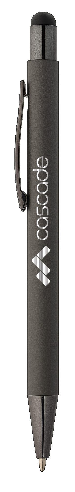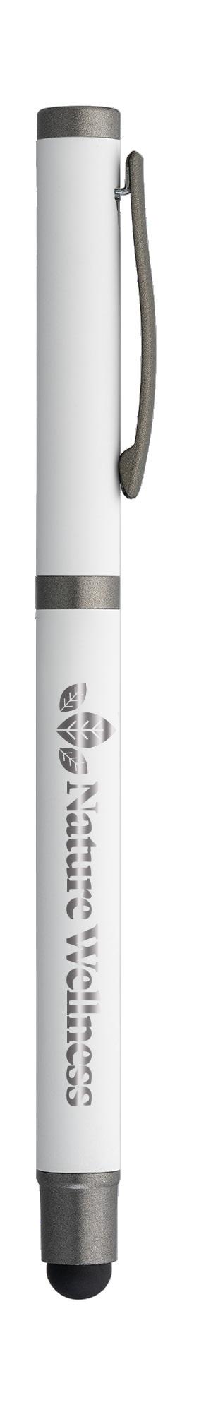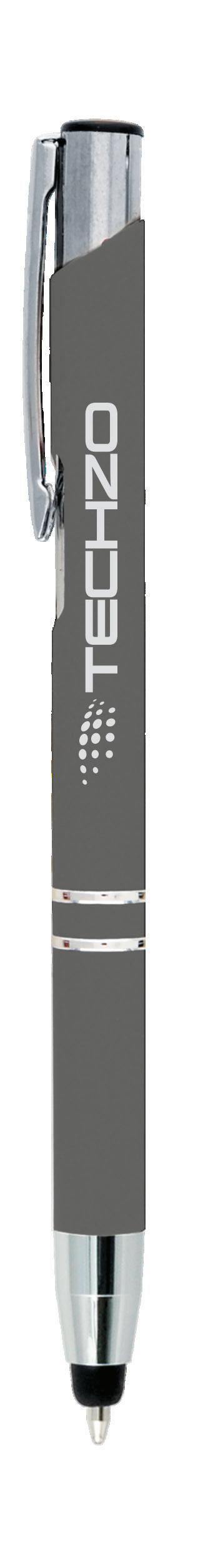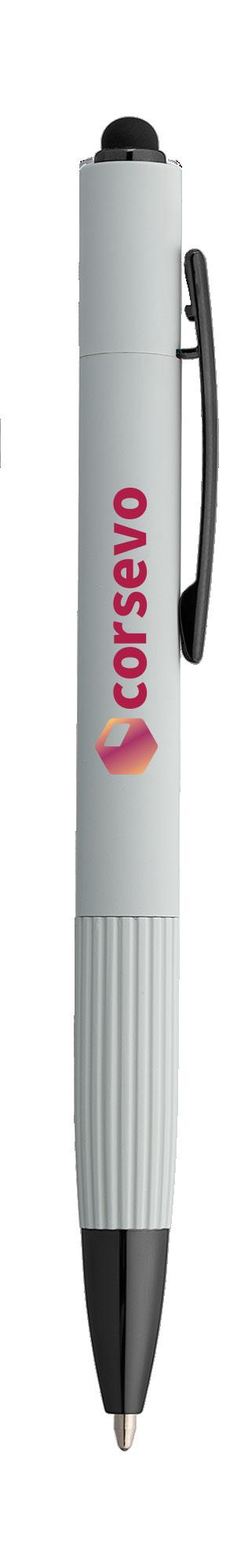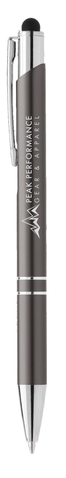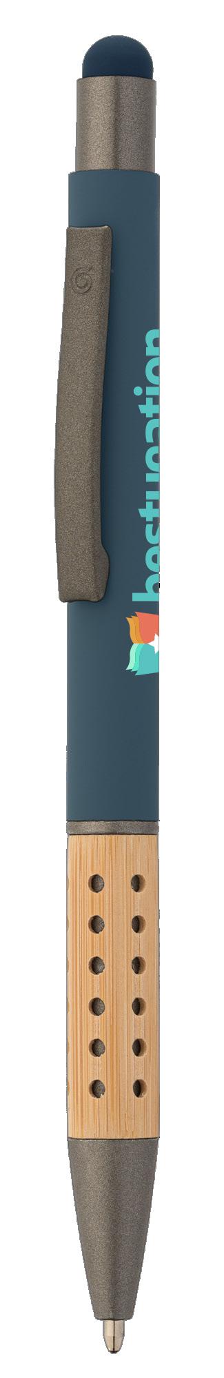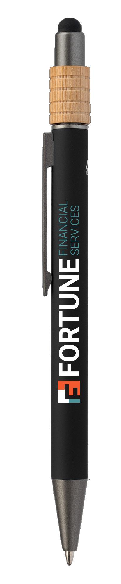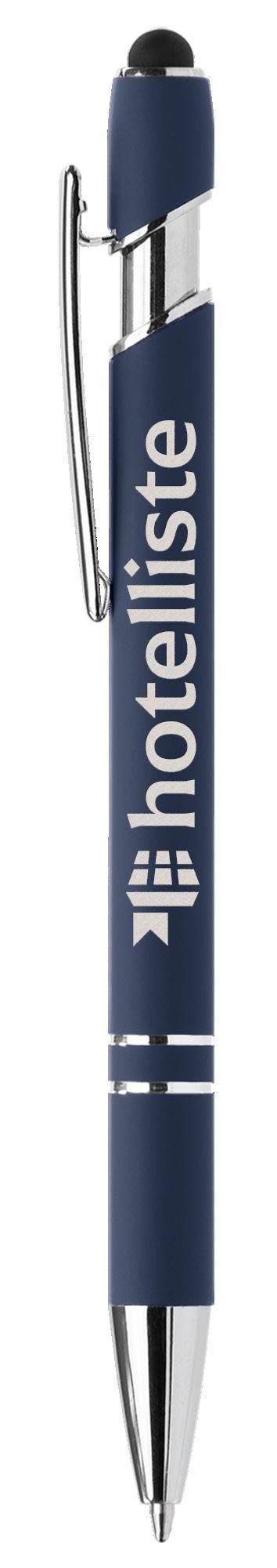 SAGA KUGELSCHREIBER MIT DRUCKMECHANISMUS UND STYLUS AUS RECYCELTEM ALUMINIUM » JBO