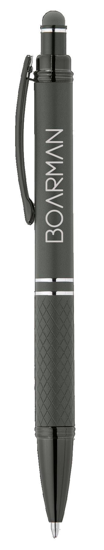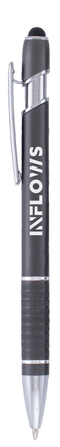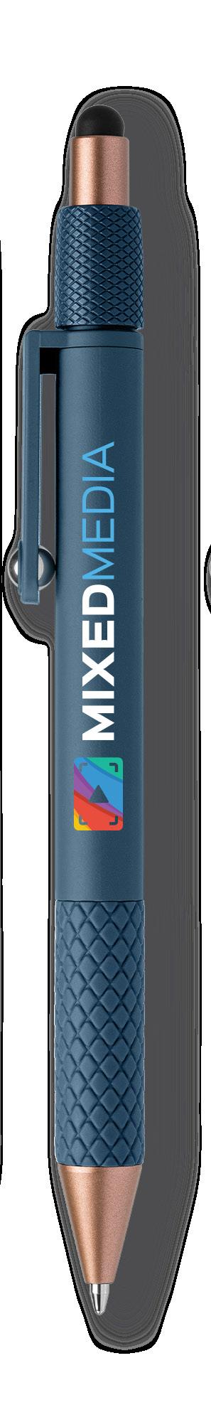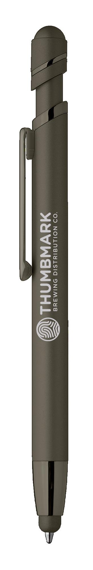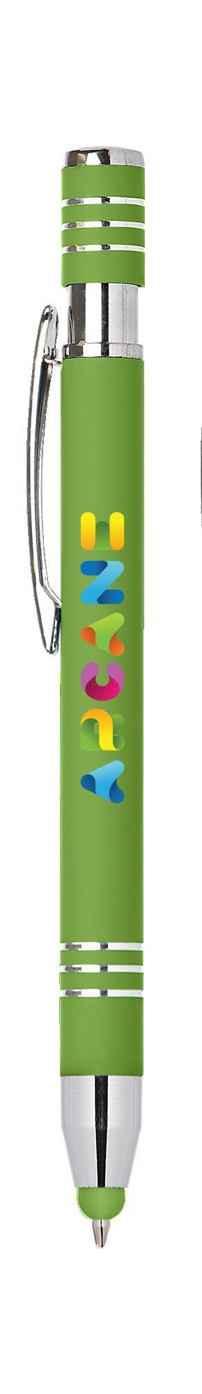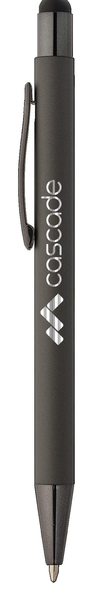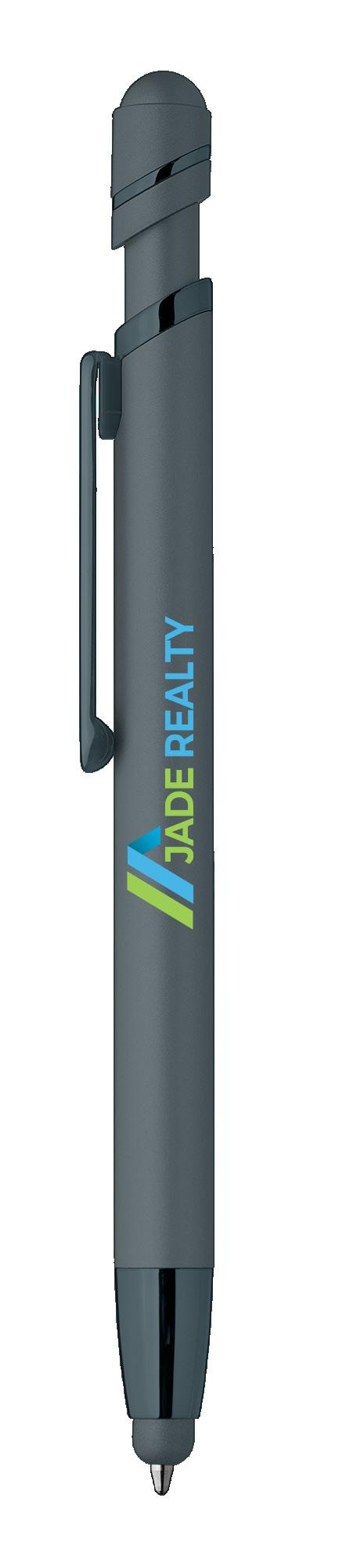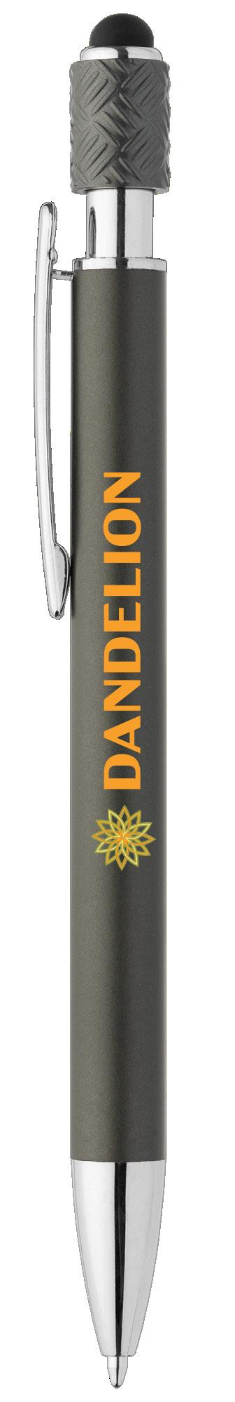 SAGA KUGELSCHREIBER MIT DRUCKMECHANISMUS UND STYLUS AUS RECYCELTEM ALUMINIUM » JBO