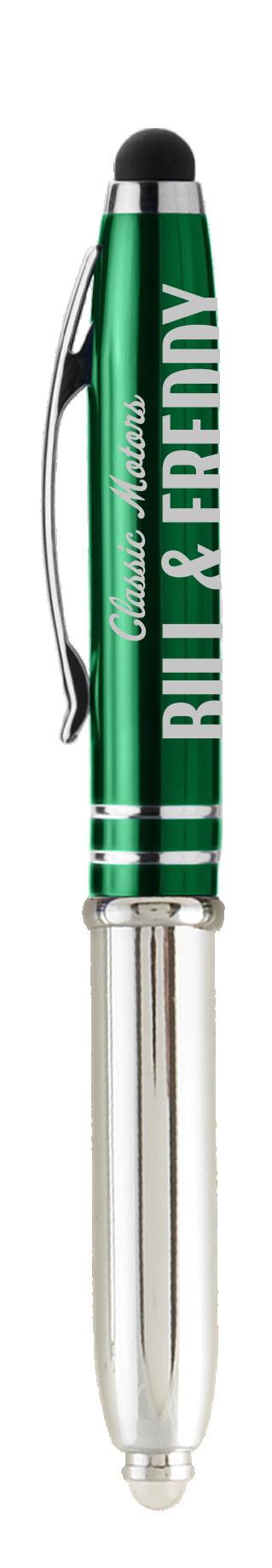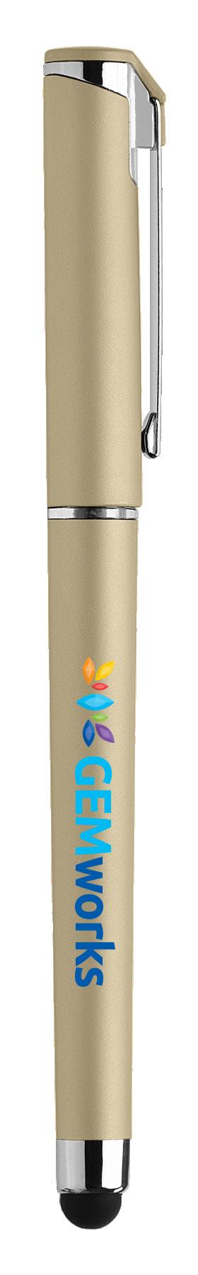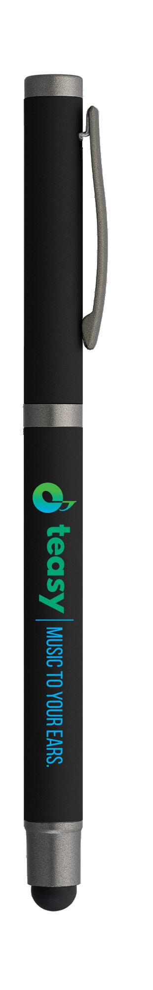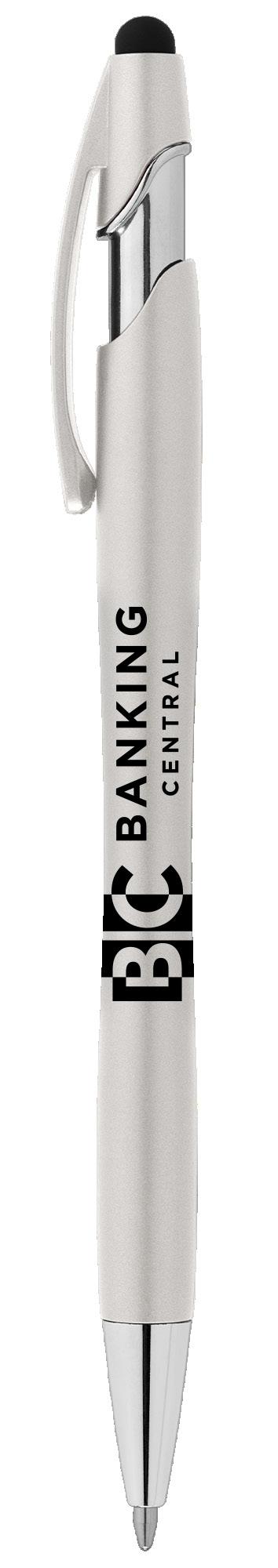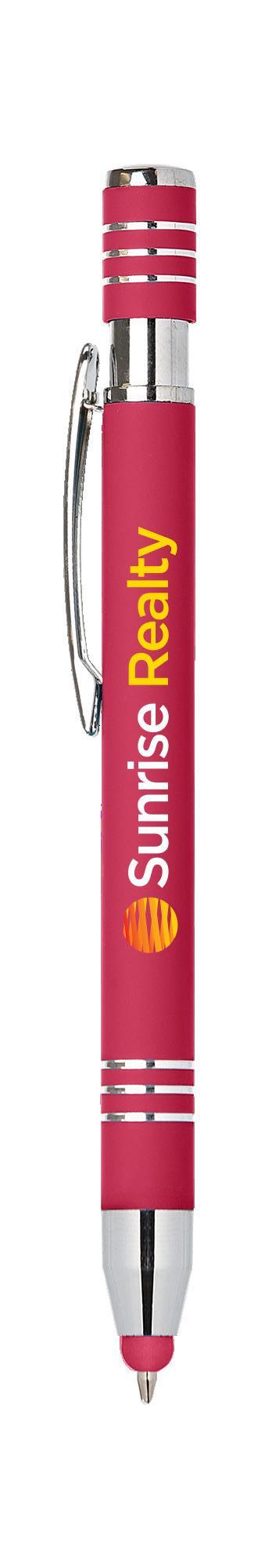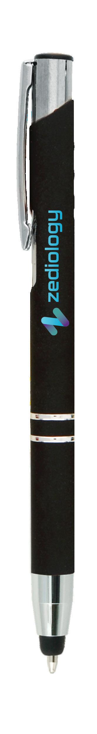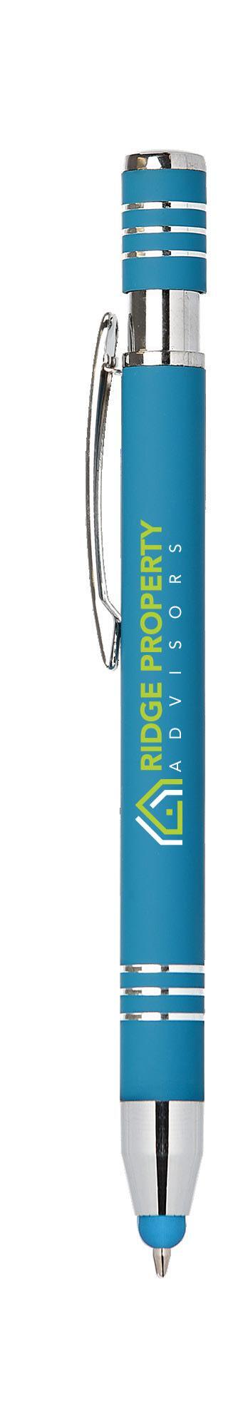 SAGA KUGELSCHREIBER MIT DRUCKMECHANISMUS UND STYLUS AUS RECYCELTEM ALUMINIUM » JBO