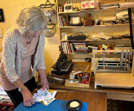 frame made by a neighbour, and a range of different tools including scalpels and various knives and – because bookbinding involves a lot of pressing –heavy old domestic irons, weights from old scales, big old books and a large Russian doll filled with obsolete coins.
