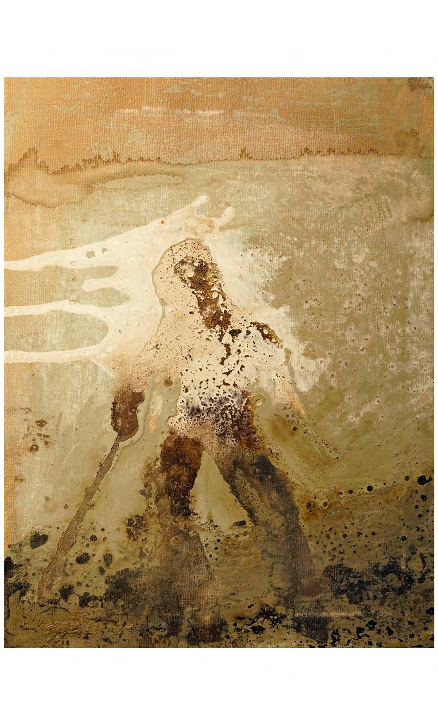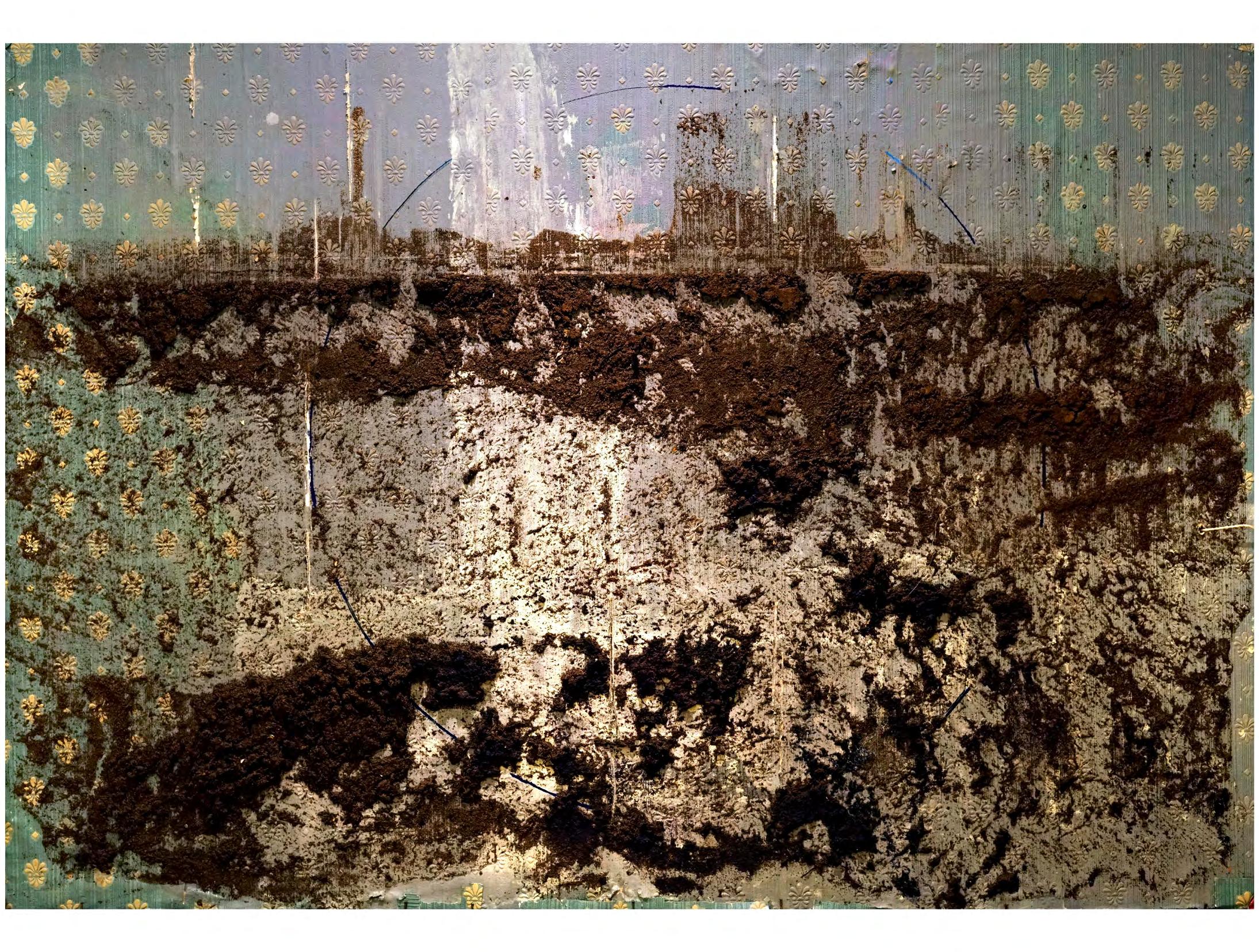 His long-standing interest in earth, peat-bog, and hinterland focuses on what he calls “the human and weathering imprint.”