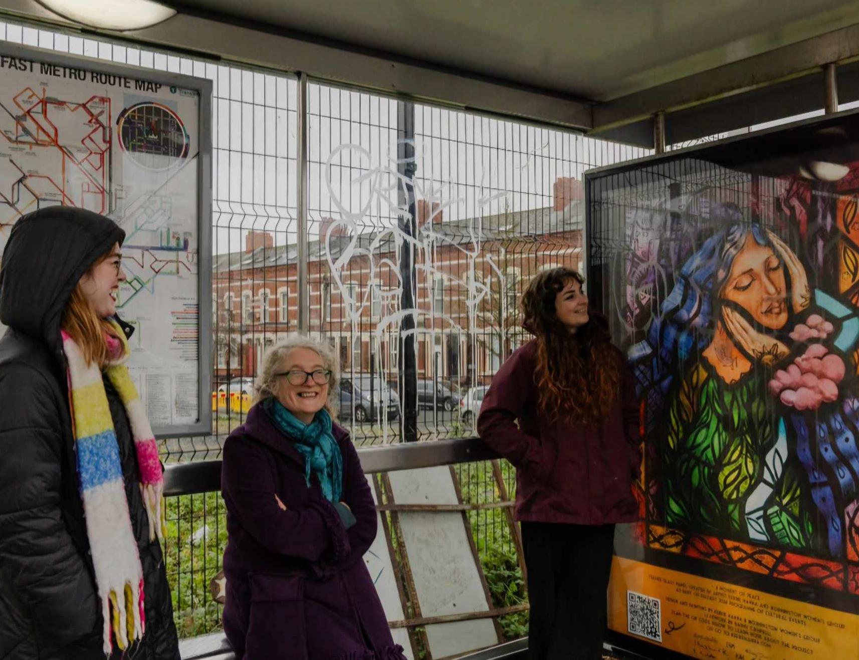 and the ongoing realities of violence against women, including trans women, situating myth within lived urgency. Hanna exhibited her Inner Landscape paintings there for the first time, alongside a stained glass panel co-designed with Mornington Women’s Group exploring Belfast’s evolving story post-ceasefire.