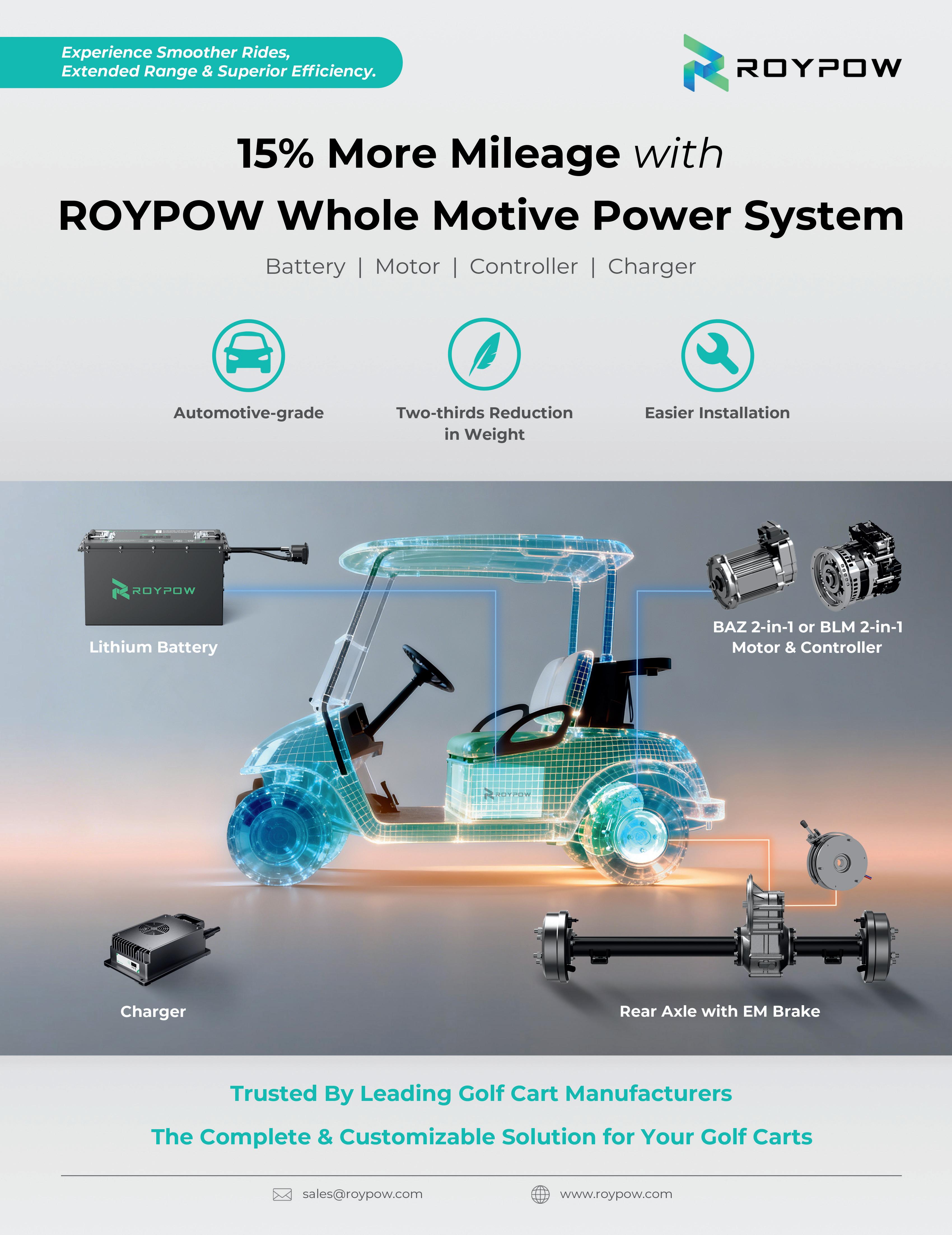 • Contact ROYPOW today. Our batteries are engineered to meet the rigorous demands of daily use, empowering your carts to perform consistently.