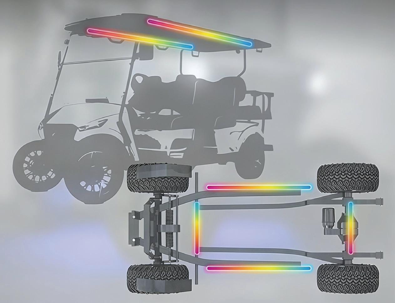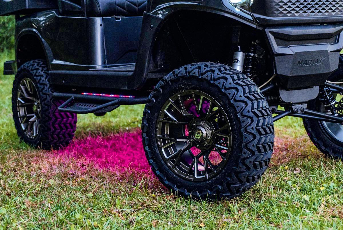 Add some glow to your cart with LED accent lights. We like a couple of options from MadJax, the LUX Underglow and Top Kits. They offer bright, adjustable lights so you can choose from tons of colors and patterns. You can go for a subtle glow or brighten up the effect depending on how you want your cart