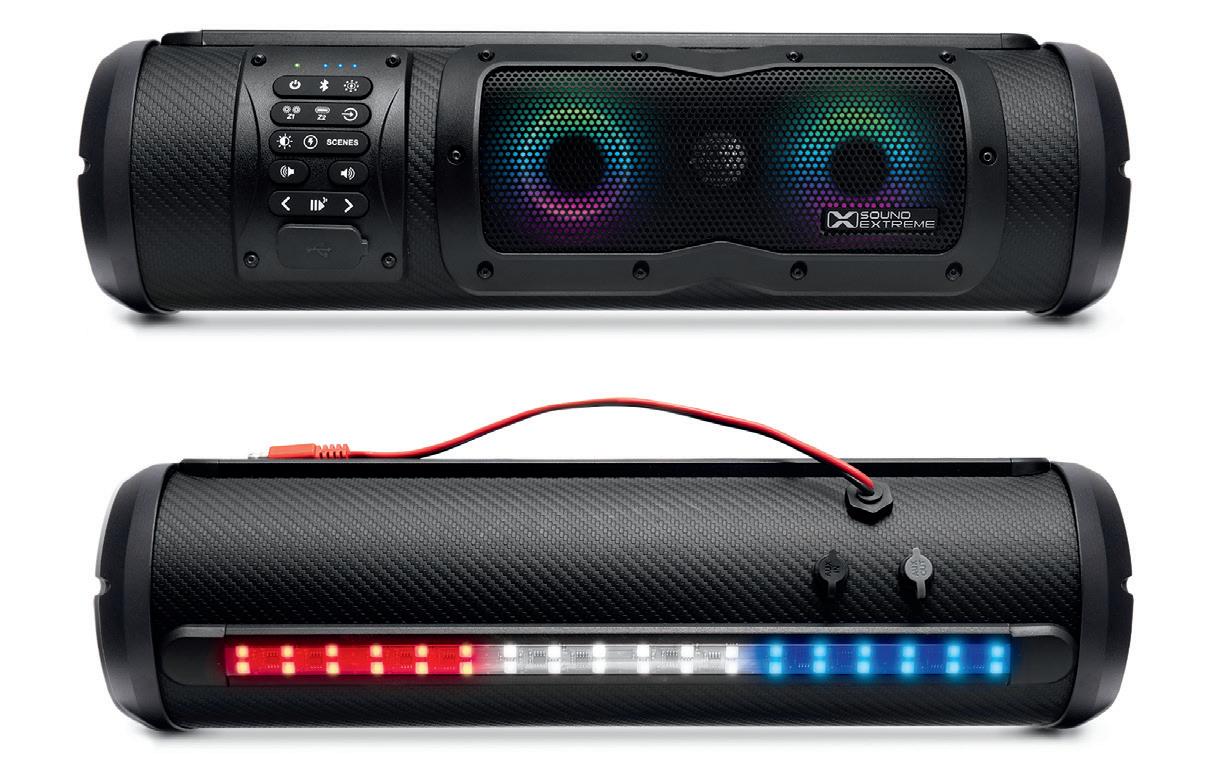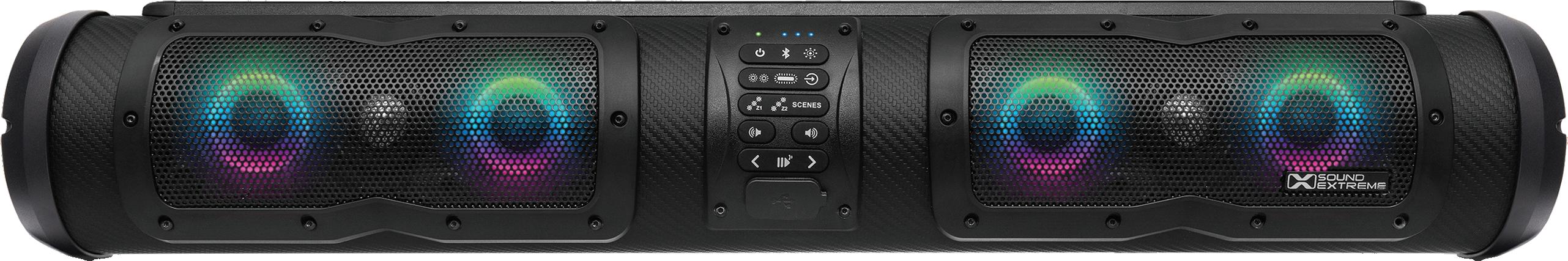 The SoundExtreme SE18E is an 18-inch soundbar that still puts out plenty of sound. It's fully waterproof and dustproof, so you don't have to worry about rain, washdowns, or riding on dirt roads. Controls are built into the bar, and it also includes LED lighting you can sync to your music if you want