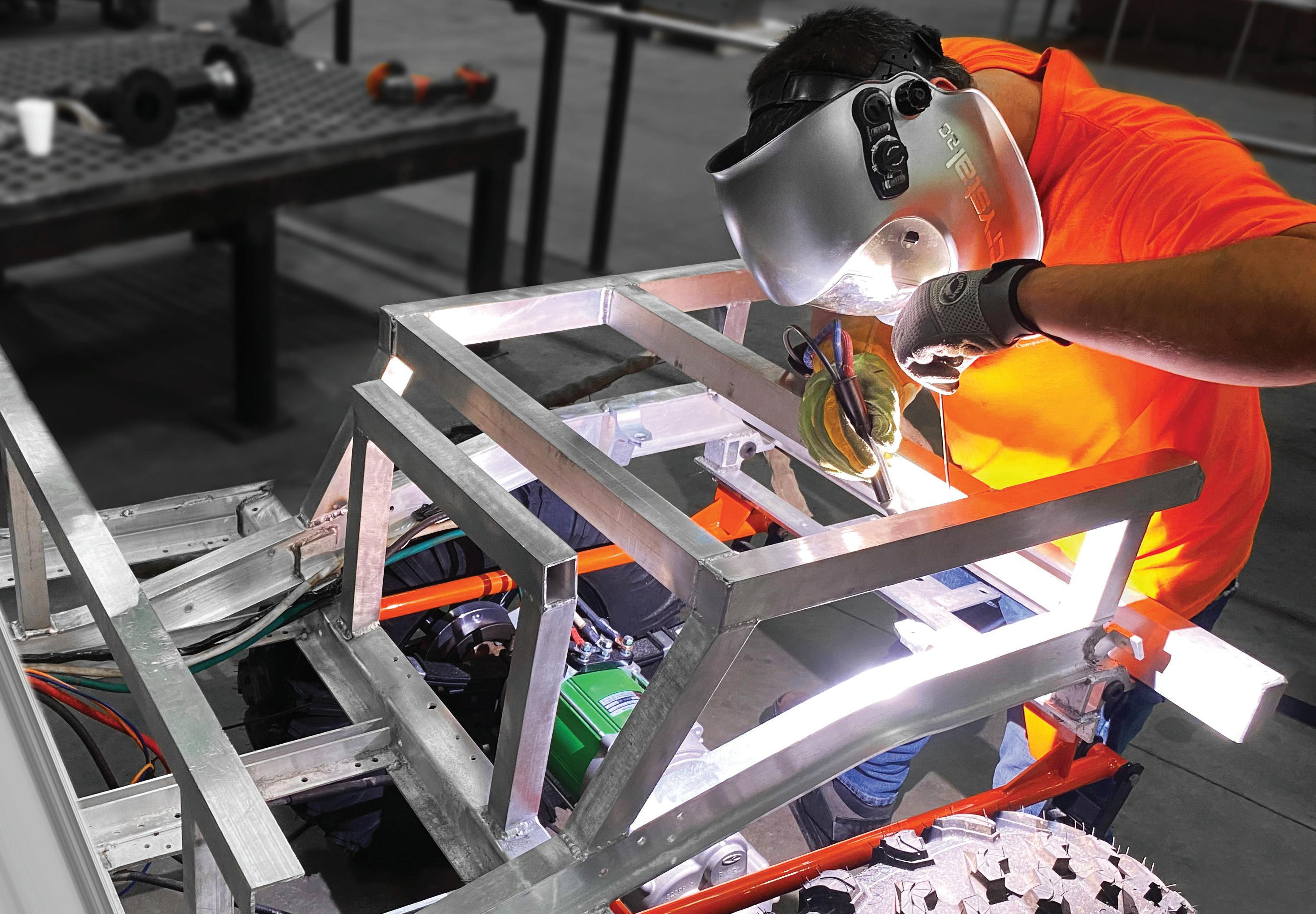 “We have recently gone to an 8kw motor and topof-range AC motor controller for increased power and torque, allowing even our 6-passenger models to maintain a 25-mph top speed and maximum power