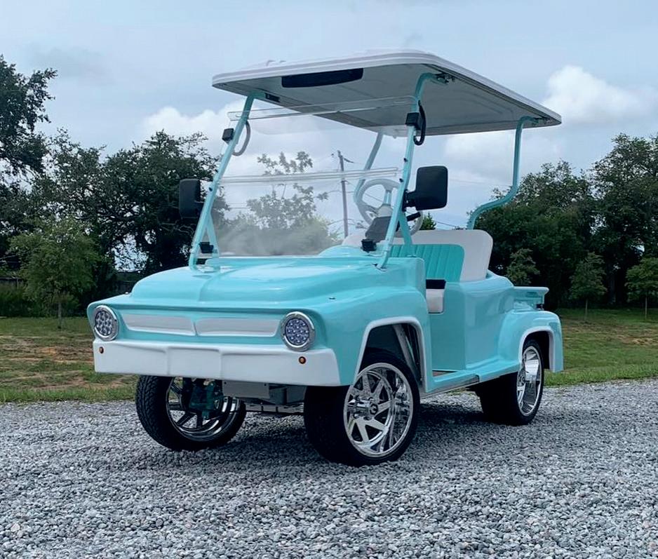 A: This one’s built on a 2020 Ezgo RXV – but it’s far from your everyday golf cart.