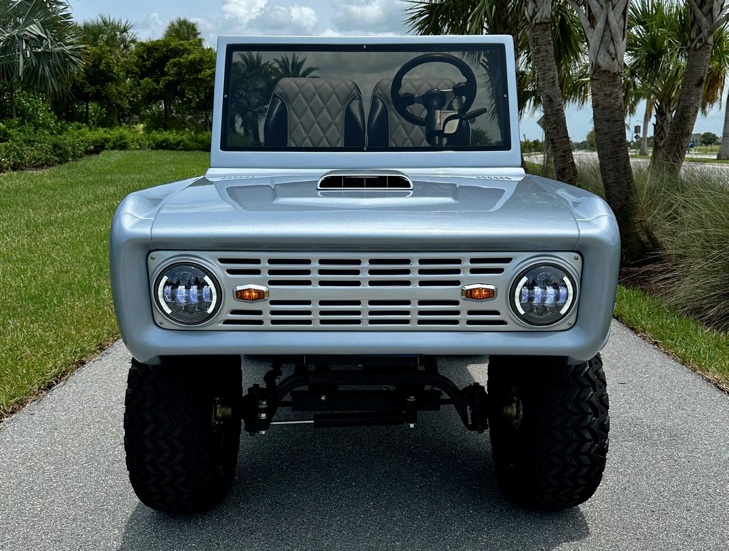 Navitas Rolling Chassis, Fiberglass Bronco Body Shell (Golfin Garage), Bolt Energy 72V Lithium Battery, Custom Seats (WheelzLLC.com), Custom Paint (Auto Art of Boynton Beach), FNR Rotary Switch, Custom 2GA Cables
