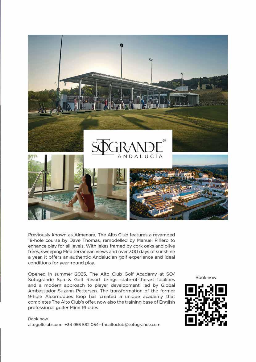 Back then, the vision was simple: create a dedicated publication that showcased the region’s outstanding golf courses, celebrated the game, and provided a trusted companion for visitors and residents alike. Two decades later, that small idea has grown into a fixture of the golfing landscape, and today we are proud to be celebrating our 100th edition. Much has changed since our first issue. The Costa del Sol has firmly established itself as Europe’s leading golf destination, earning the title “Costa del Golf” with more than 70 courses stretching from Málaga to Sotogrande. Along the way, we’ve seen worldclass tournaments hosted on our fairways, from the Solheim Cup to prestigious European Tour events. We’ve interviewed professionals
