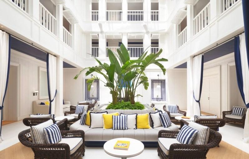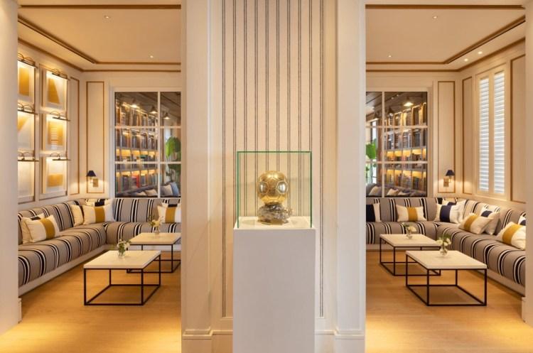 First opened in the 1990’s, the hotel has reopened after a twoyear and complete renovation. Now the interiors are crisp and elegant — white marble, soft fabrics, maritime blues — with balconies overlooking yachts and the Mediterranean. And for football fans, the lobby includes one of Messi’s Ballon d’Or.