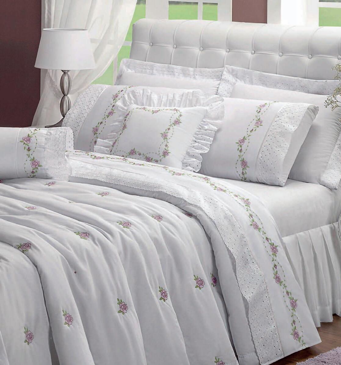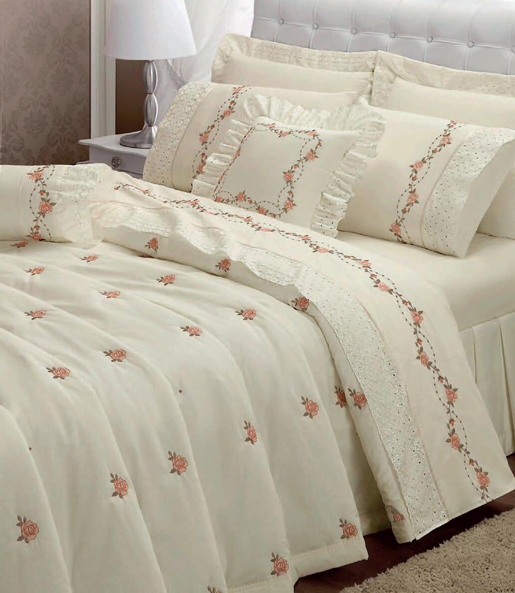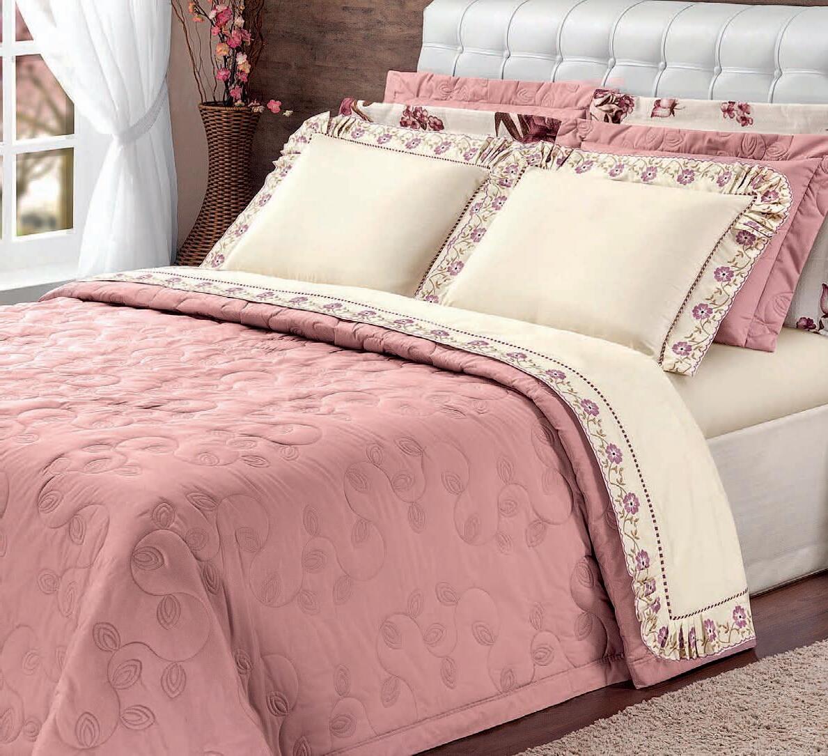 1 cobre-leito 2,40 x 2,80 m 2 porta-travesseiros 50 x 70 cm com abas